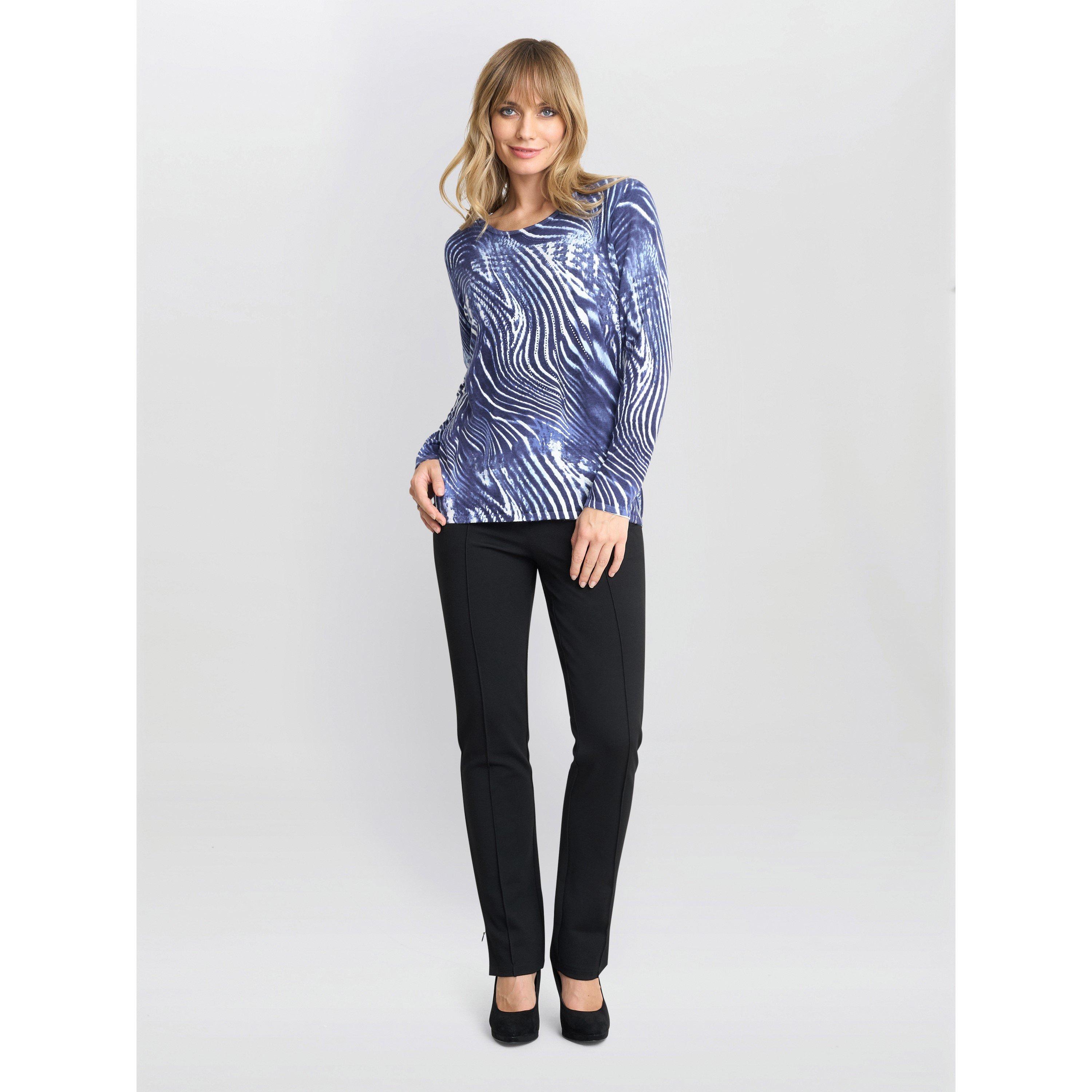 This season your favourite jumper comes in a fun blue and white zebra print. Our jumpers come in the softest knit scattered with subtle diamantes! Perfect to dress up or down this season. This jumper has a round neck and full-length sleeves.