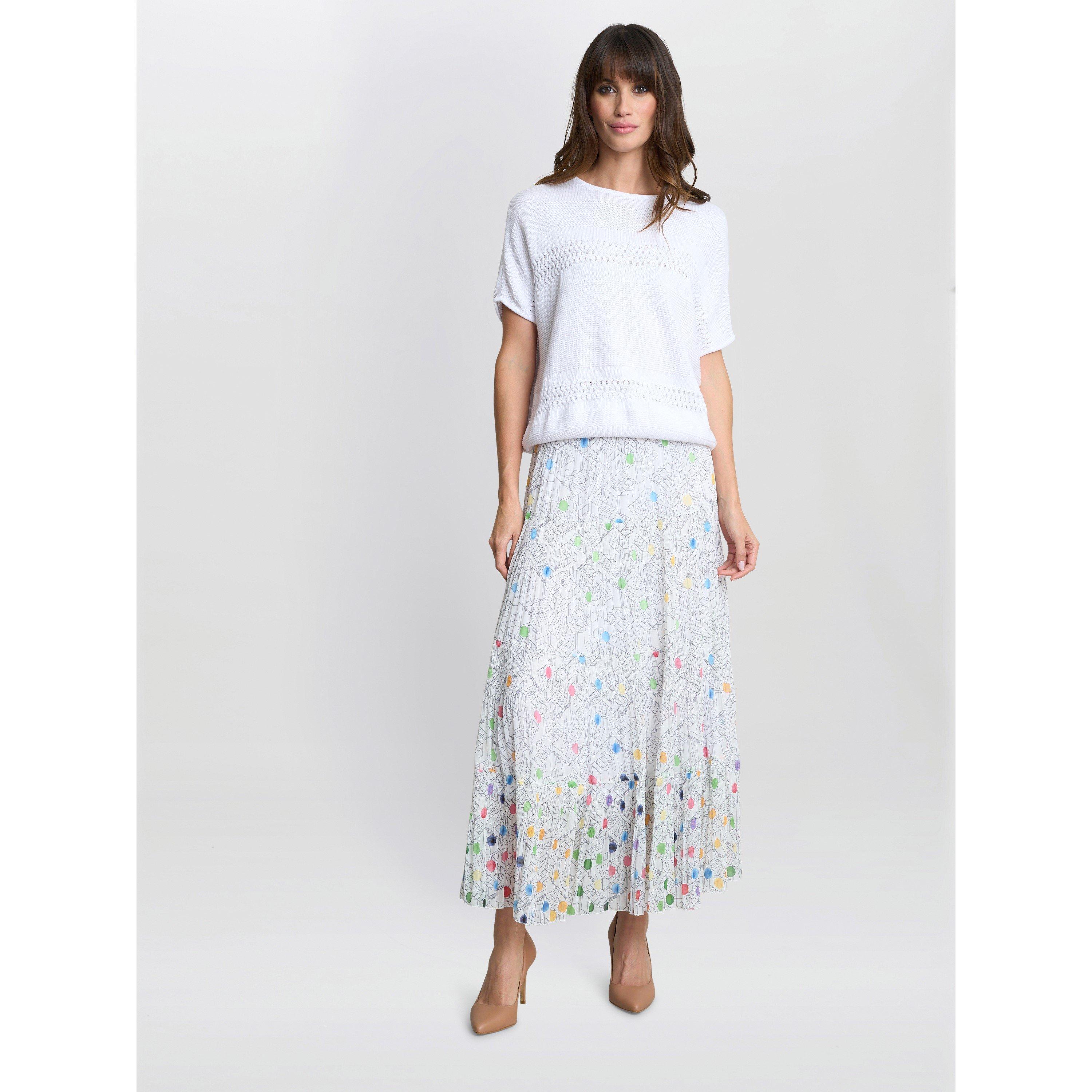 The LAYLA Knitted Jumpsuit from Gina Bacconi is a knitwear piece featuring cable detailing. This casual yet chic design includes a round neckline with short sleeves, and measures 64 cm in length.