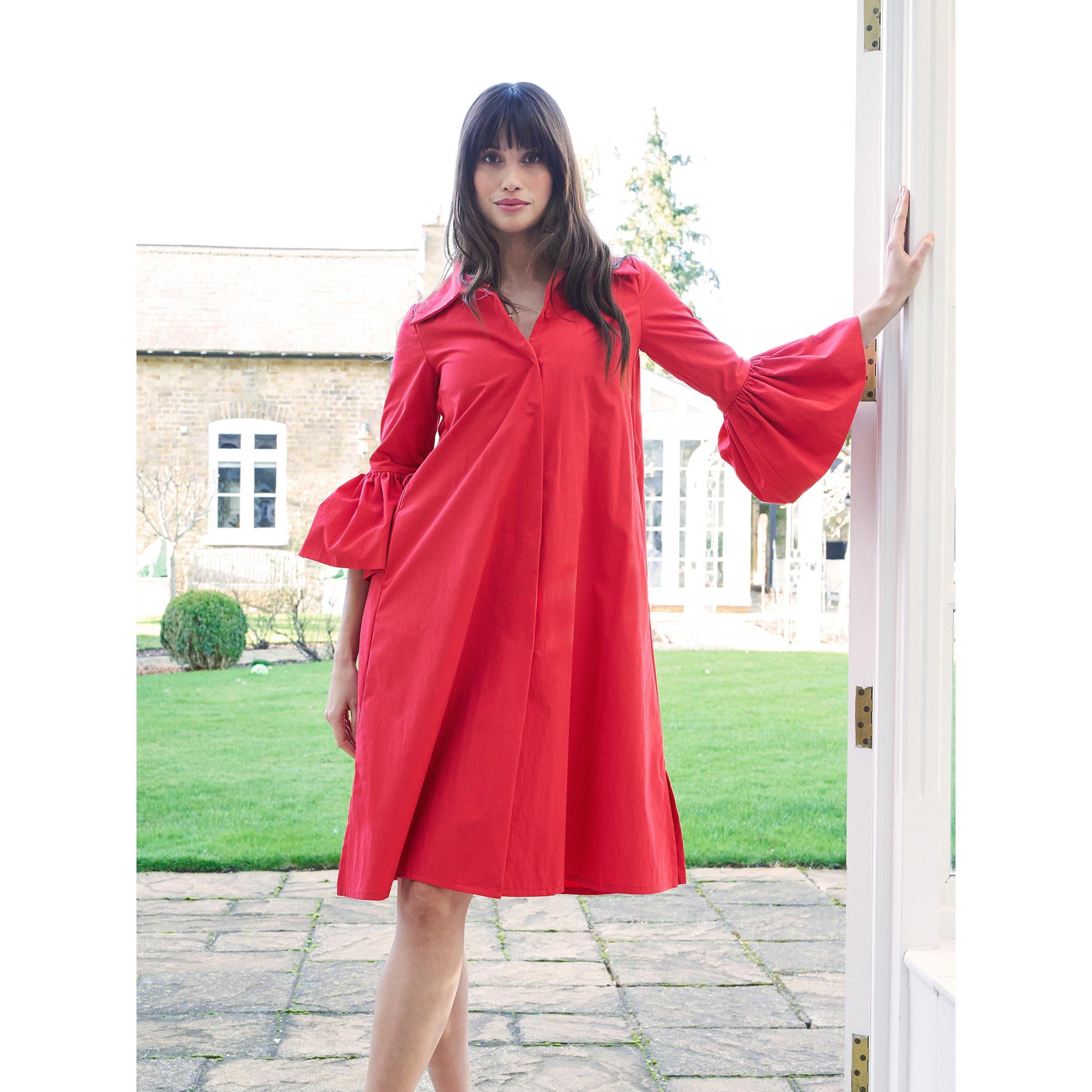Wow in this versatile shirt dress. Featuring full bell sleeves this dress has an optional self belt and pockets. Perfect for both day and evening events. This dress is unlined.
