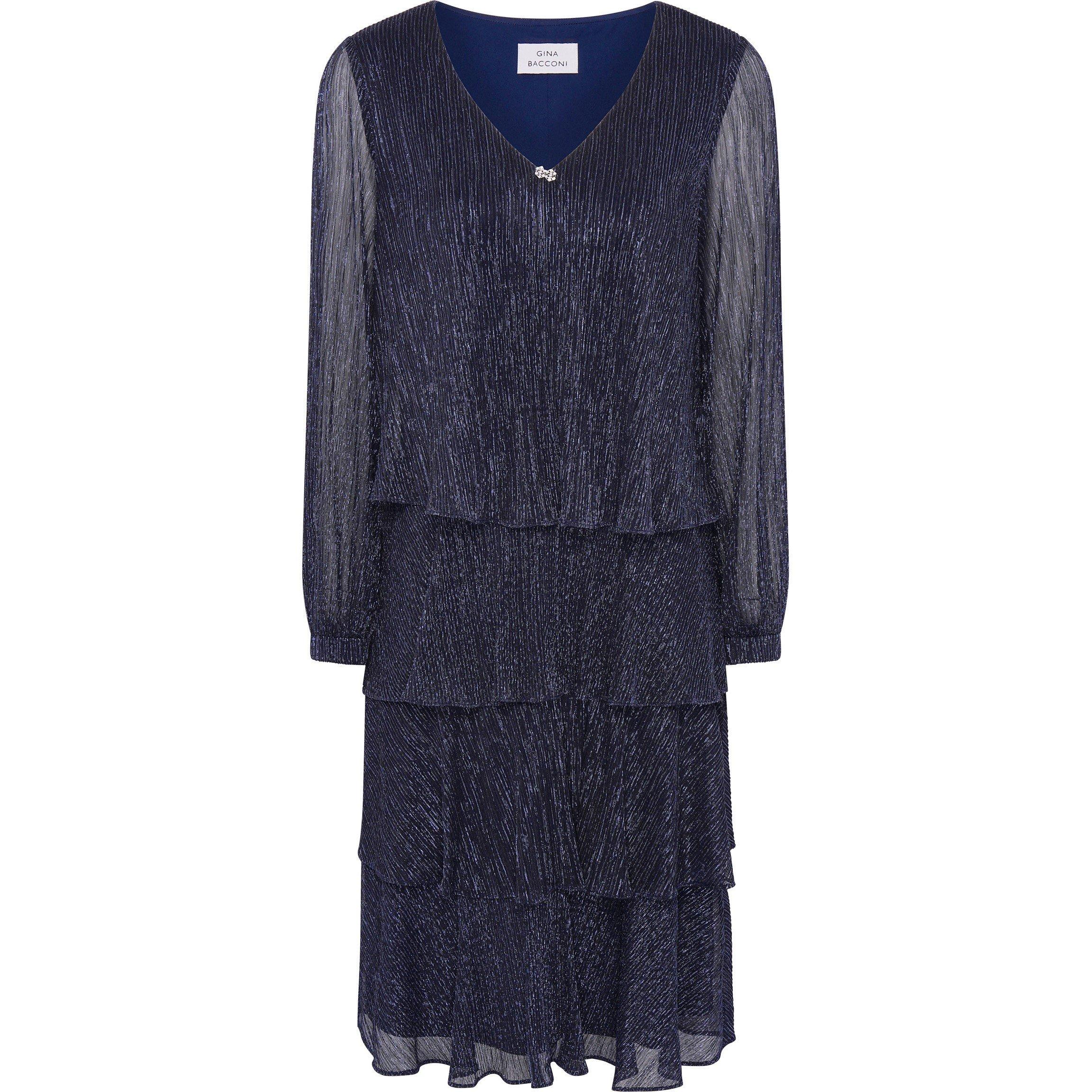 Elegant and chic, the Rosmary navy tiered dress is the go to for your next occasion. Made from a lightweight shimmering fabric, this dress features a V-neckline, sheer long sleeves. The tiered skirt makes in sophisticated, it’s an ideal choice for weddings, evening occasions, or any special occasion. Lined with sleeves unlined.