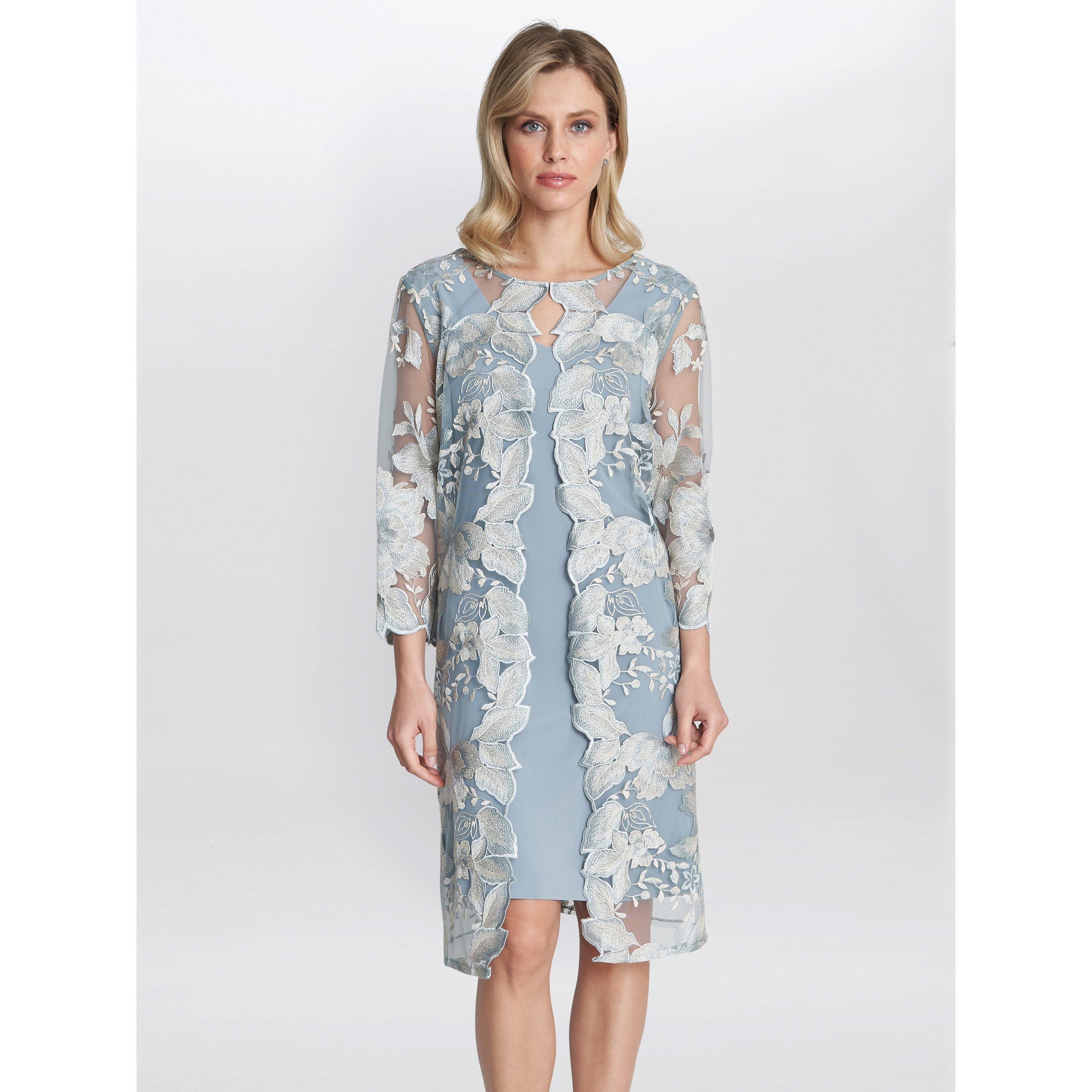 Gina Bacconi presents its stunning jersey and lace dress. This perfect occasionwear piece is comprised of a classic shift dress overlaid with a detailed floral lace and strewn with light-catching sequins. The lace features a scallop lace which adorns the front of the dress and the sleeve edge. The dress is fully lined and fastens using a concealed back zip.