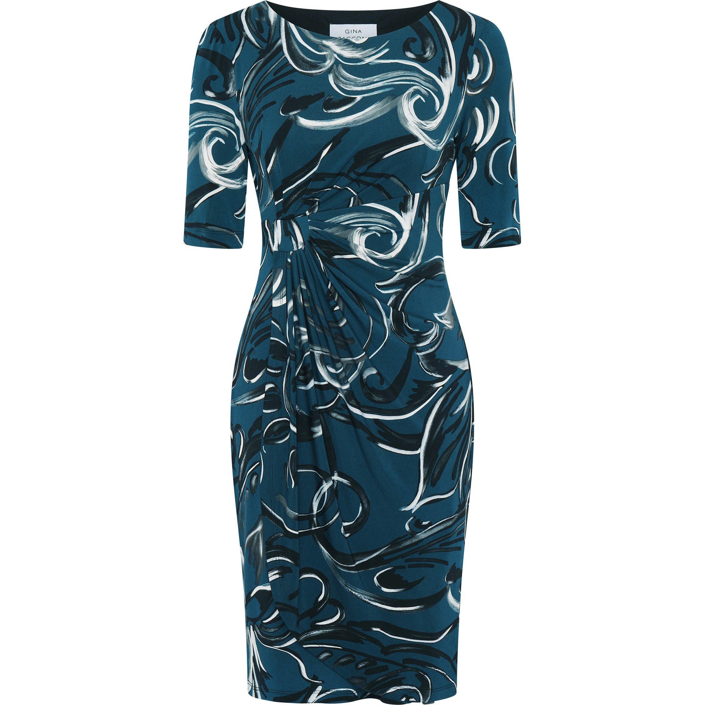 The Yvonne printed jersey dress is your go-to for standout style. Featuring a bold, swirl pattern in tones of green, black and white. With a flattering twist detail at the waist, this dress hugs in all the right places while keeping your comfortable from day and night. The 3/4 sleeves and round neckline add a polished touch, making it perfect for work, dinners or any events.