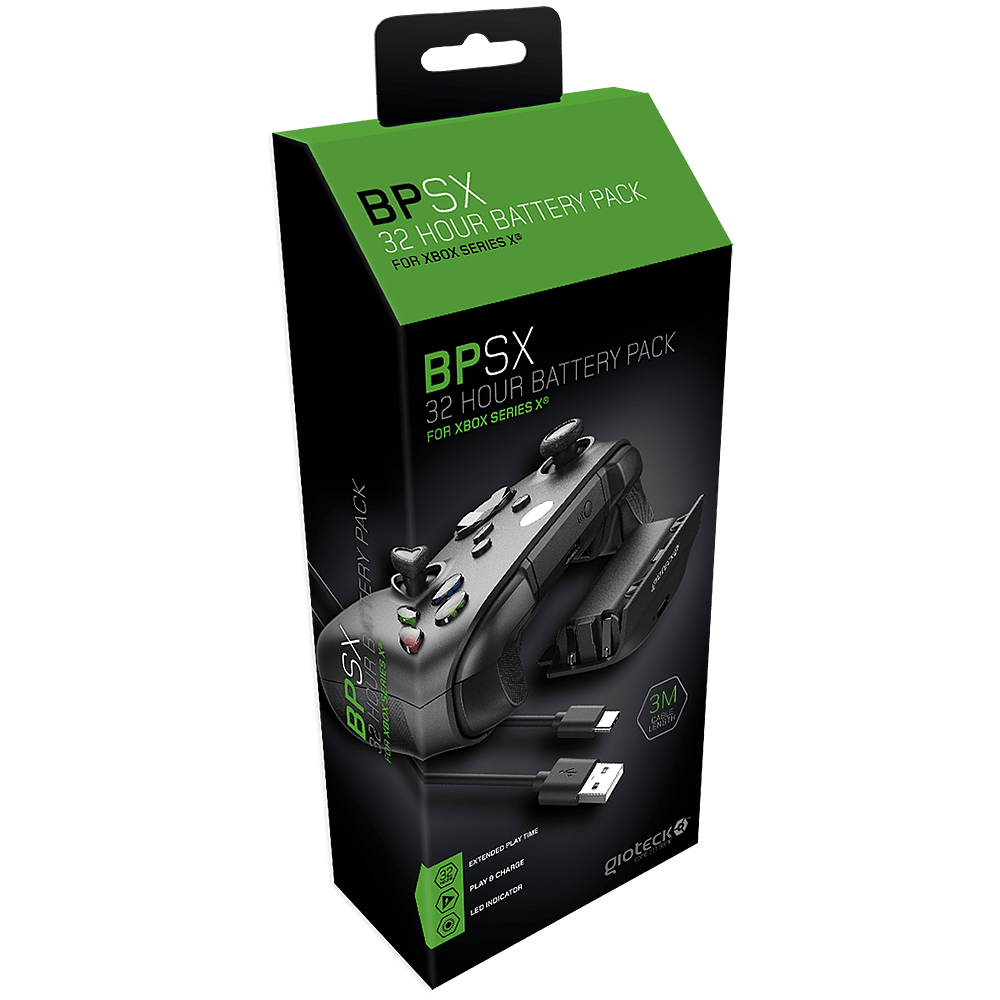 Fit this superior performance, rechargeable battery into any official Xbox Series X controller, for up to 32 hoursof gameplay when fully charged. The LED will indicate when you are refuelled, while the included 3 meter plug andplay cable offers convenient, mid-game play and charge, keeping you in the game for longer withoutinterruption.
