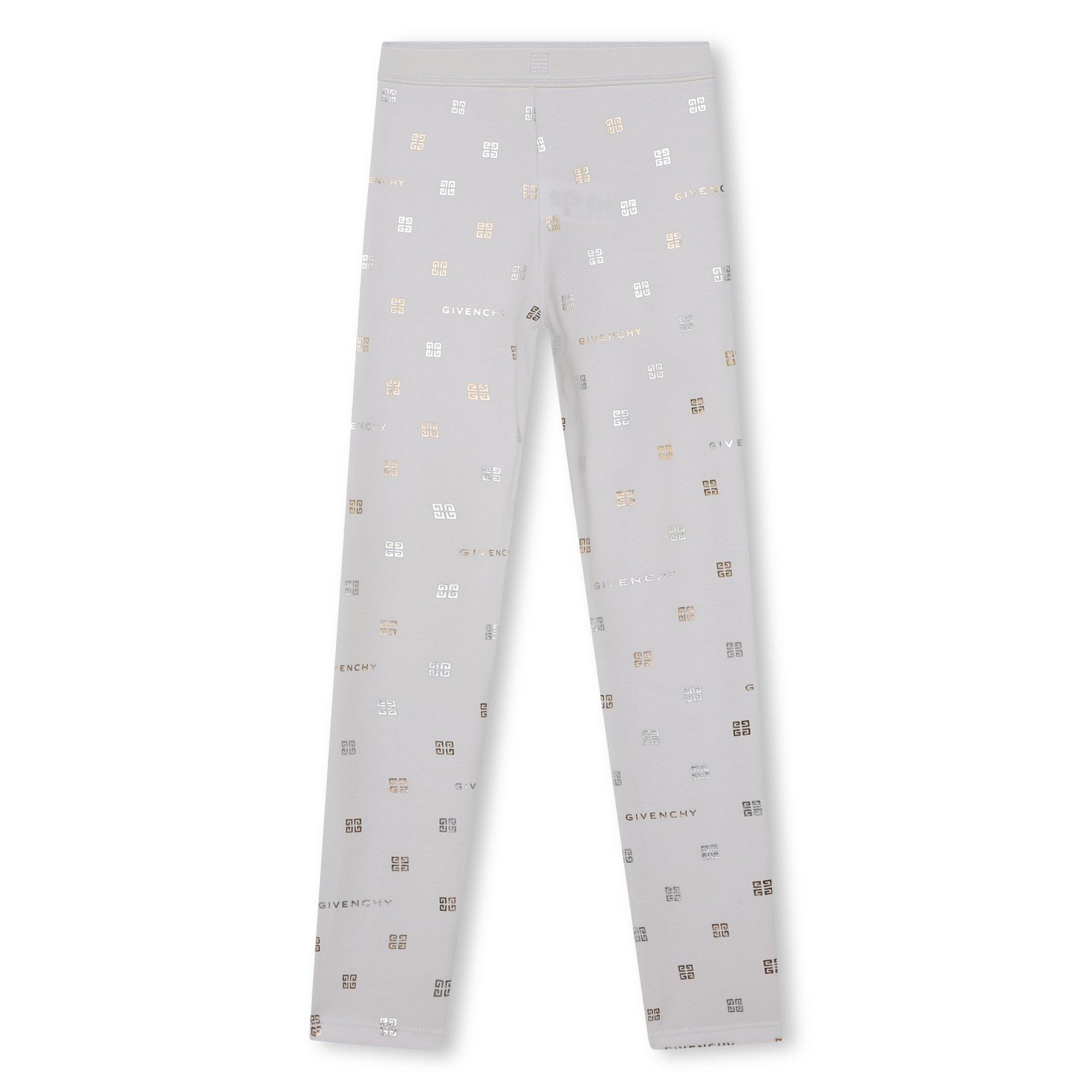 The iconic 4G logo- a staple of Givenchy- defines these jersey leggings, appearing in a metallic all-over print that will be the talk of the playground. To complete the look, the label's signature lettering is rendered on the waistband in a sophisticated jacquard weave. Whether she is visiting friends, doing her homework or attending a family party, let her stand out from the crowd with these 4G Logo Leggings from Givenchy.