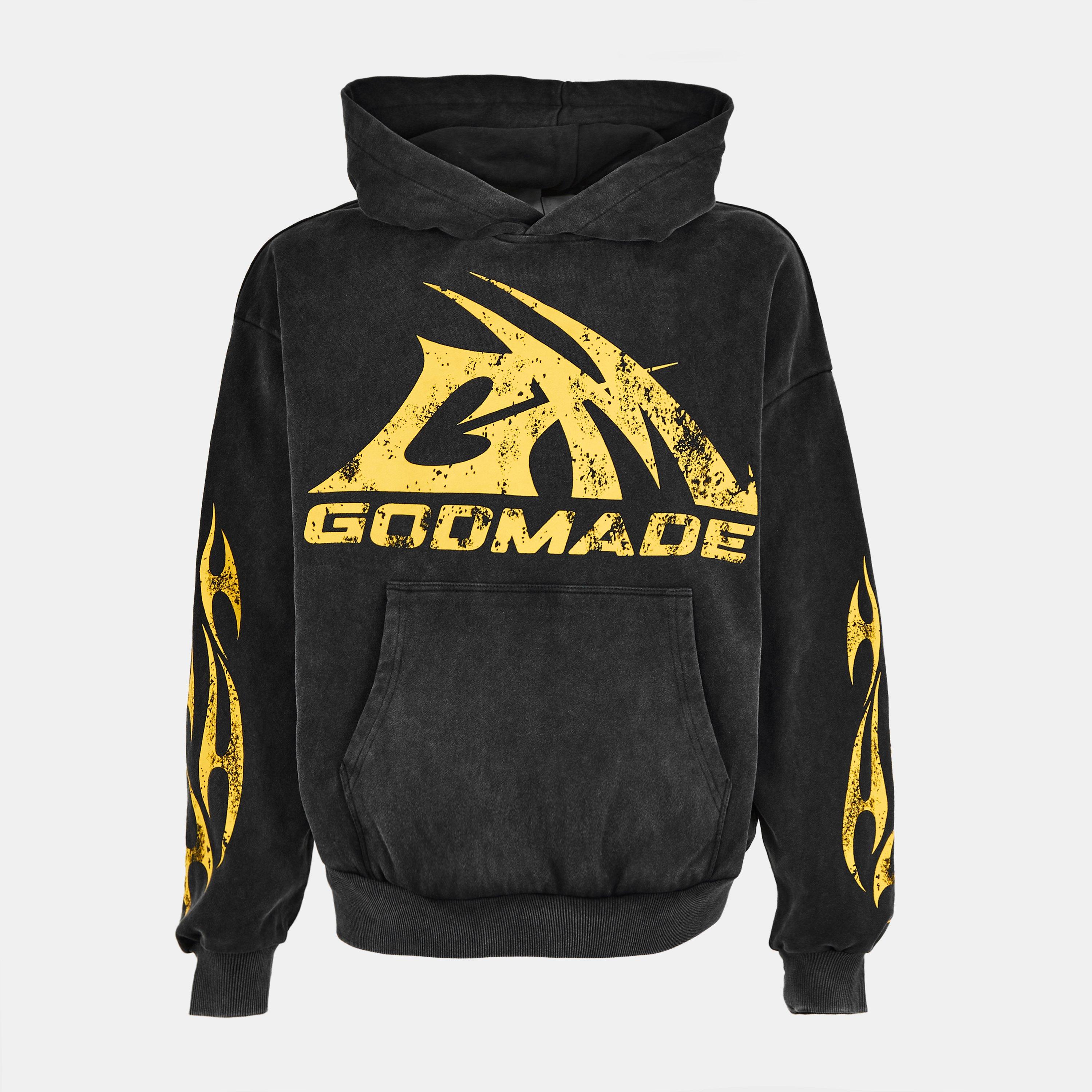 Revitalise your everyday wardrobe with this eye-catching GM Logo Hoodie from God Made. Expertly crafted in premium loopback jersey fleece and cut for a slightly oversized fit, this hooded sweatshirt for men is perfect for transseasonal months, whether lounging at home after a busy week, running errands, or going on a casual outing with your family or friends.