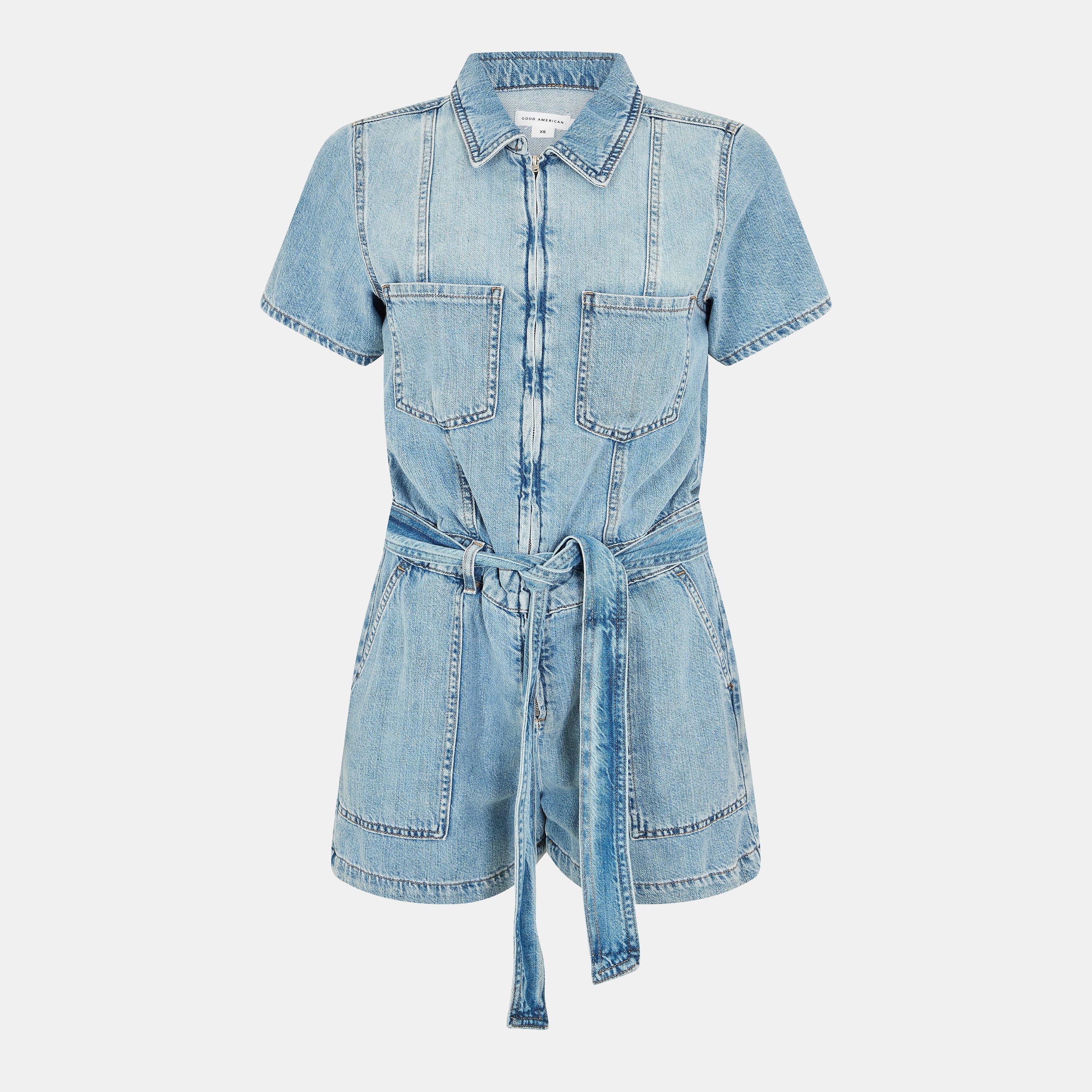 Good American's Playsuit unites casual style with practical design. The lightweight fabric offers breathable comfort while maintaining a structured shape, making it ideal for summer wear.