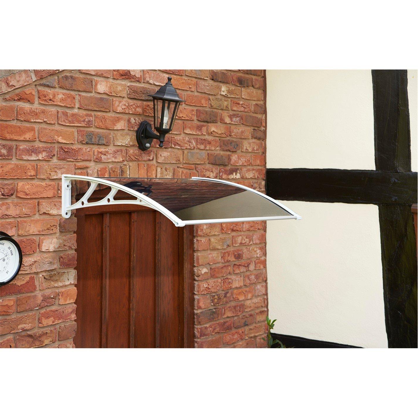 This Door canopy is a quick and easy way of providing cover from both the sun and rain. It is an attractive feature over a front or back door. It is lightweight making it easy to install, yet durable and weather resistant. Item is fitted with a tinted grey heat reflecting UV-stabilised poly-carbonate cover and high-impact resistant side brackets. Aluminium front and rear profiles with a rubber seal at the back ensure a secure fit. Supplied with wall fixings. Available with either black or white brackets