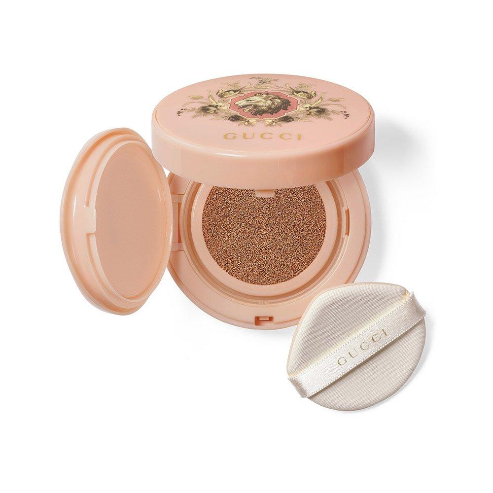 What else you need to know: This Gucci luminous foundation blends seamlessly into the skin, delivering flawless, adjustable light to medium coverage for a very natural finish. Available in twelve foundation shades that provide intense hydration that lasts all day, Cushion De Beauté skin-caring foundation by Gucci Beauty is housed within a refillable pastel pink compact, complete with a mirror and a soft cushion applicator and embellished with a lion motif encircled by a wreath of flowers. The external packaging echoes this delightful design, adding an extra touch of allure and playfulness.