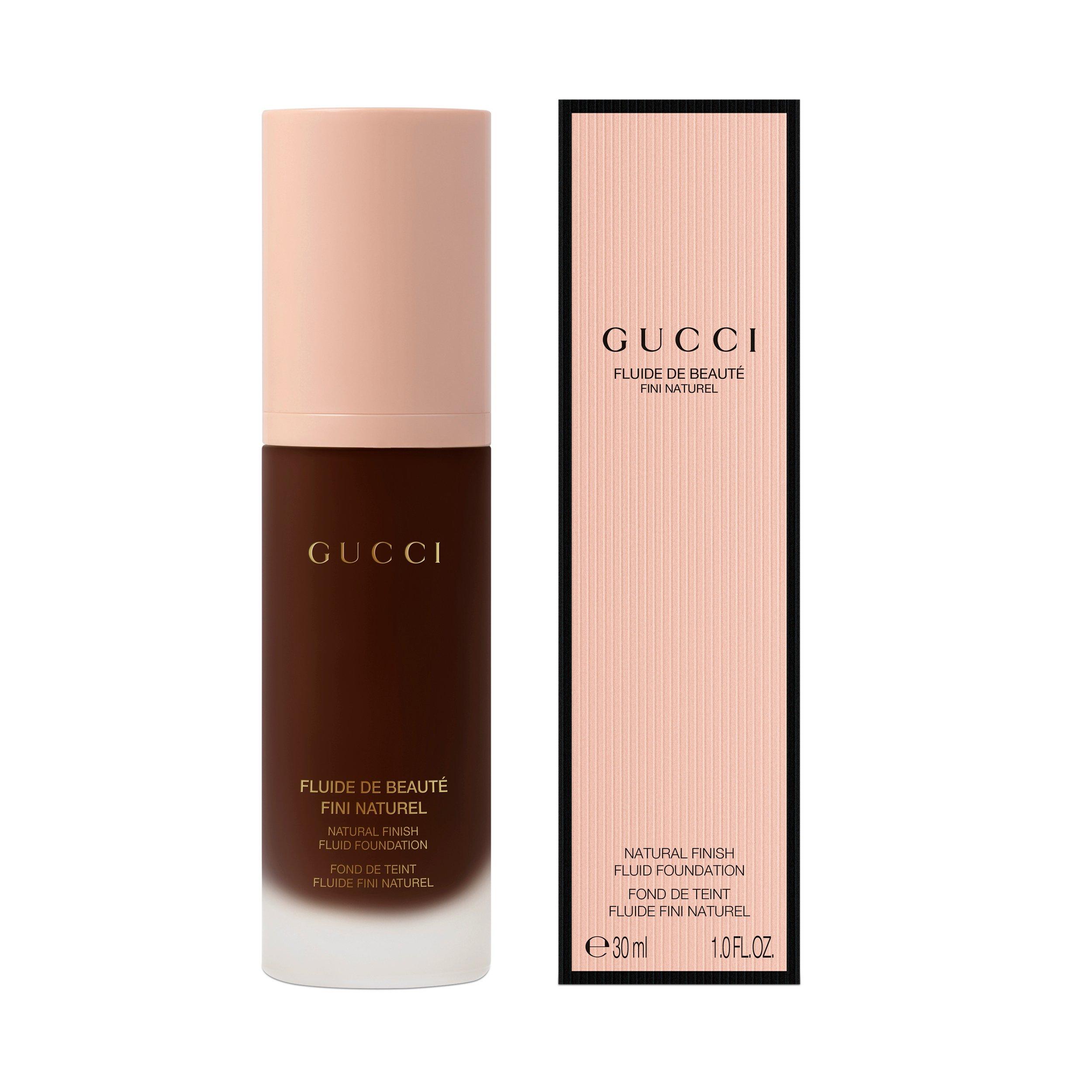 Ranging from very fair for pink undertones, all the way to a deep dark tone for neutral palettes, Fluide De Beauté Fini Naturel Natural Finish Fluid Foundation is available in 40 shades, ensuring a colour match for every skin tone and type. Encased within a transparent heavy-set frozen glass tube and a pale pink cap, the bottle is finished with iconic Gucci lettering.
