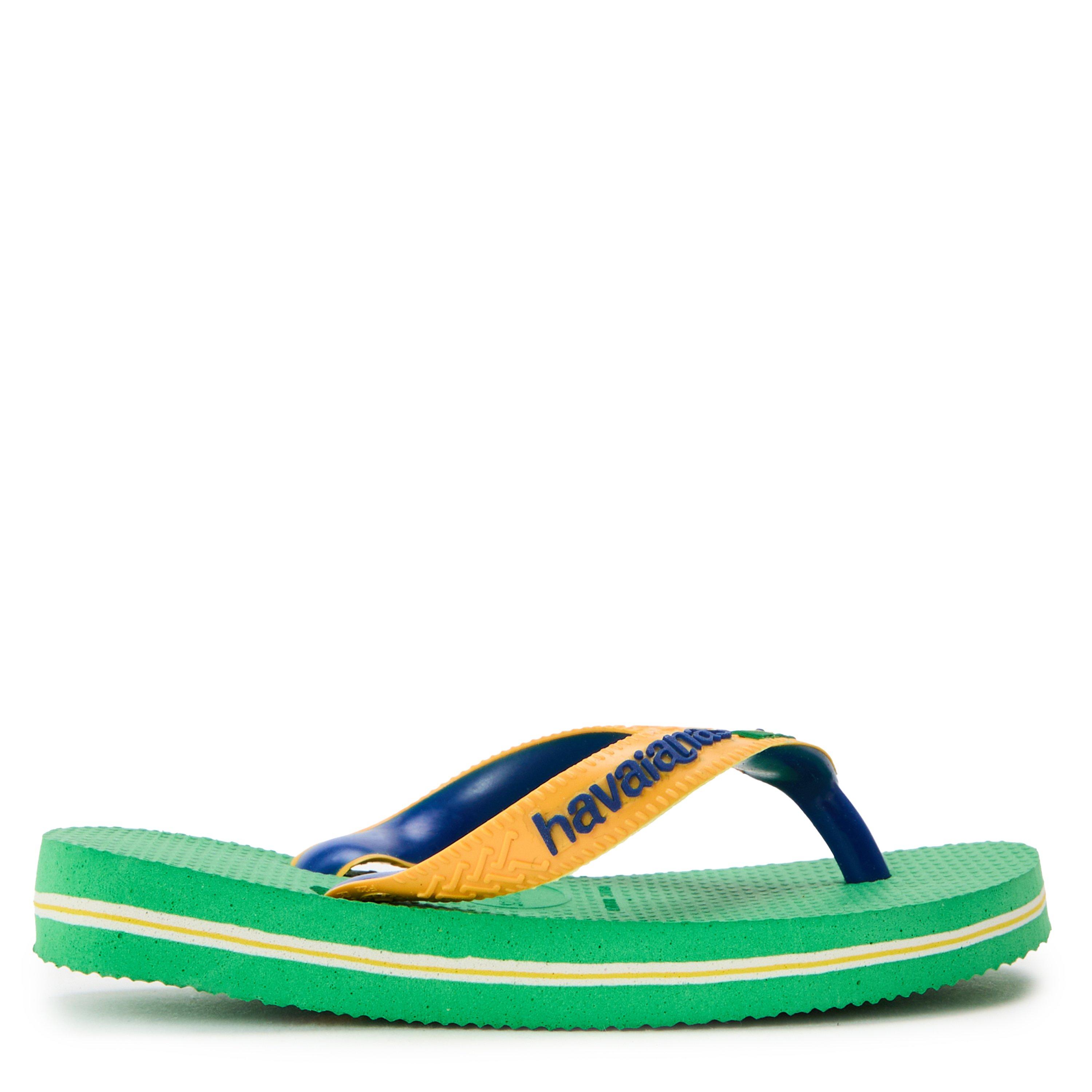 Designed for everyday leisure, the Havaianas Kids' Brasil Mix Leaf/Marine Flip Flops bring vibrant comfort to poolside moments and beyond. Lightweight design keeps feet cool and supported.