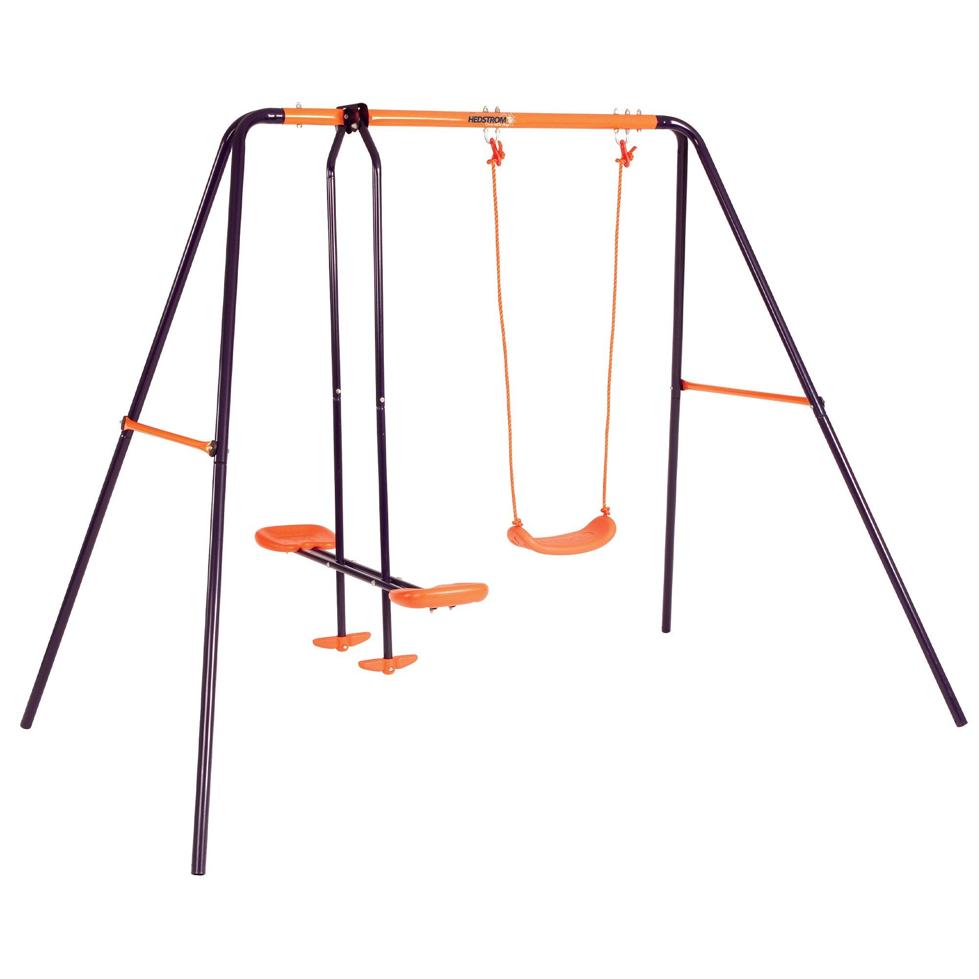 Nothing beats the great outdoors so get kids off the sofa and into the garden for active play with the Hedstrom 'Venus' multi-play containing a single swing and glider! The swing features a blow-moulded seat for comfort as well as heavy duty, soft touch ropes. The glider also has blow-moulded seats and foot-rests for extra stability and boasts a fast but smooth glide. The main frame is constructed from heavy duty powder coated steel for stability and durability and the entire set features UV resistance for longevity. With 2 activities on offer, Venus is perfect for entertaining up to 3 children at a time - ideal for school holidays, weekends or summer evenings! For safety, the Venus multi-play must be secured into the ground using the ground anchors that are provided - we also strongly recommend securing via concreting.