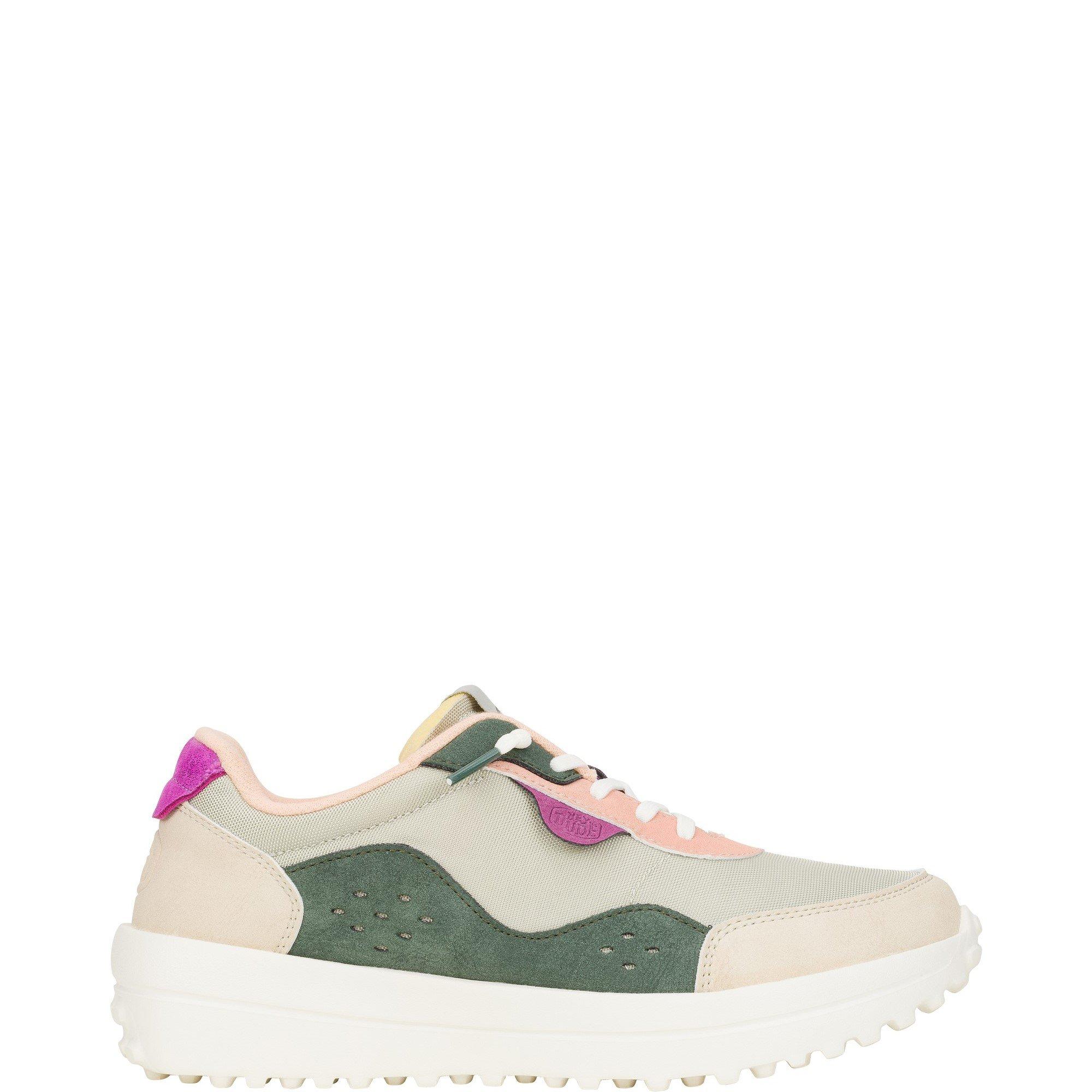 Retro running inspired, Hayden Colorblock is rooted in comfort and style-the HEYDUDE way. Layered material uppers with faux leather and suede details for a fun new look. Exposed foam on the tongue provides a nice vintage aesthetic