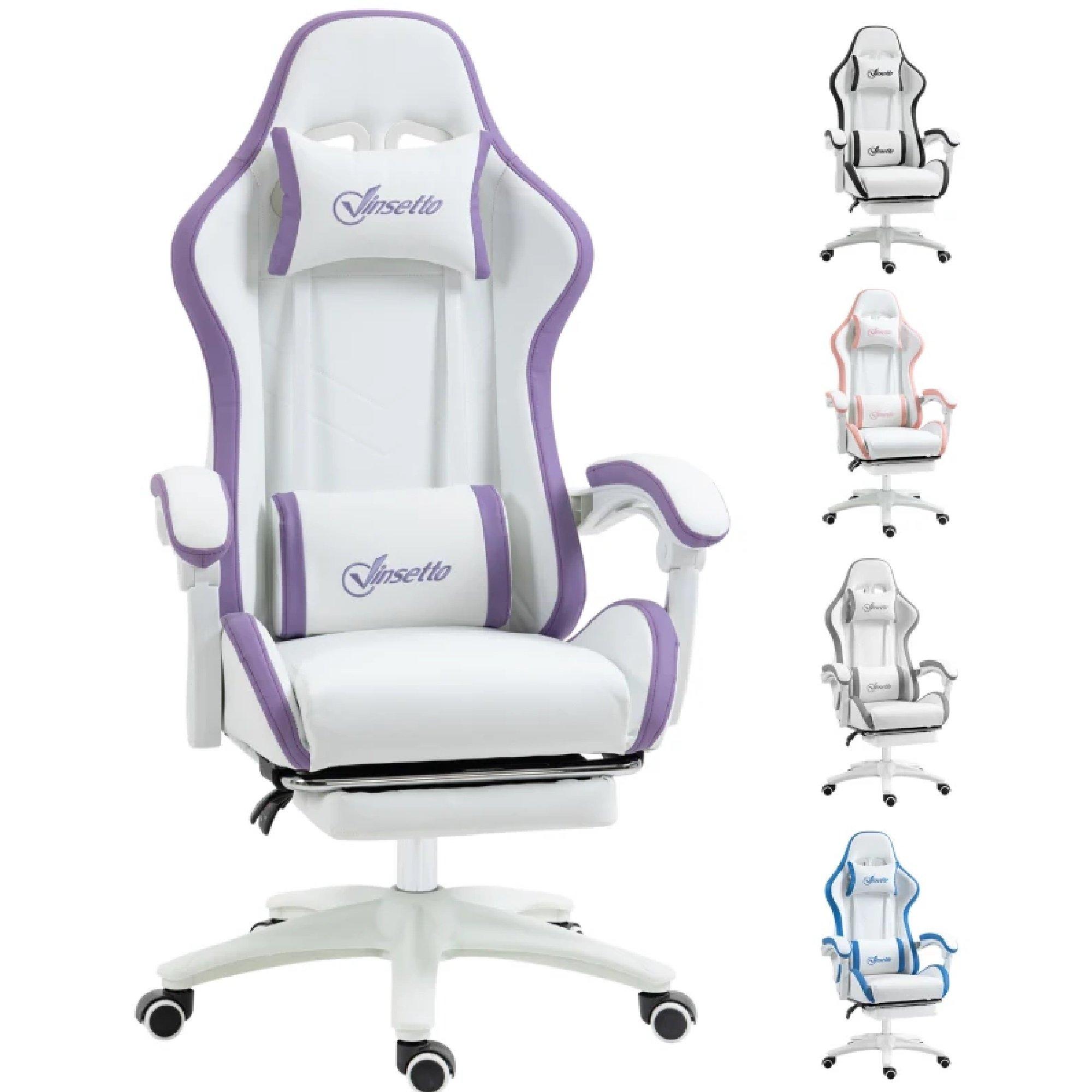 Keep comfortable and focused in the game: do it with this Vinsetto gaming chair. Faux leather upholstery is sleek, with a coloured border all over for a touch of impact. Padded all over, with head and lumbar pillow included for comfort. The back reclines to a maximum 135°, with a pull-out footrest to elevate the lower body. Adjust the height between 45.5cm and 53.5cm, to game at a position best for you.