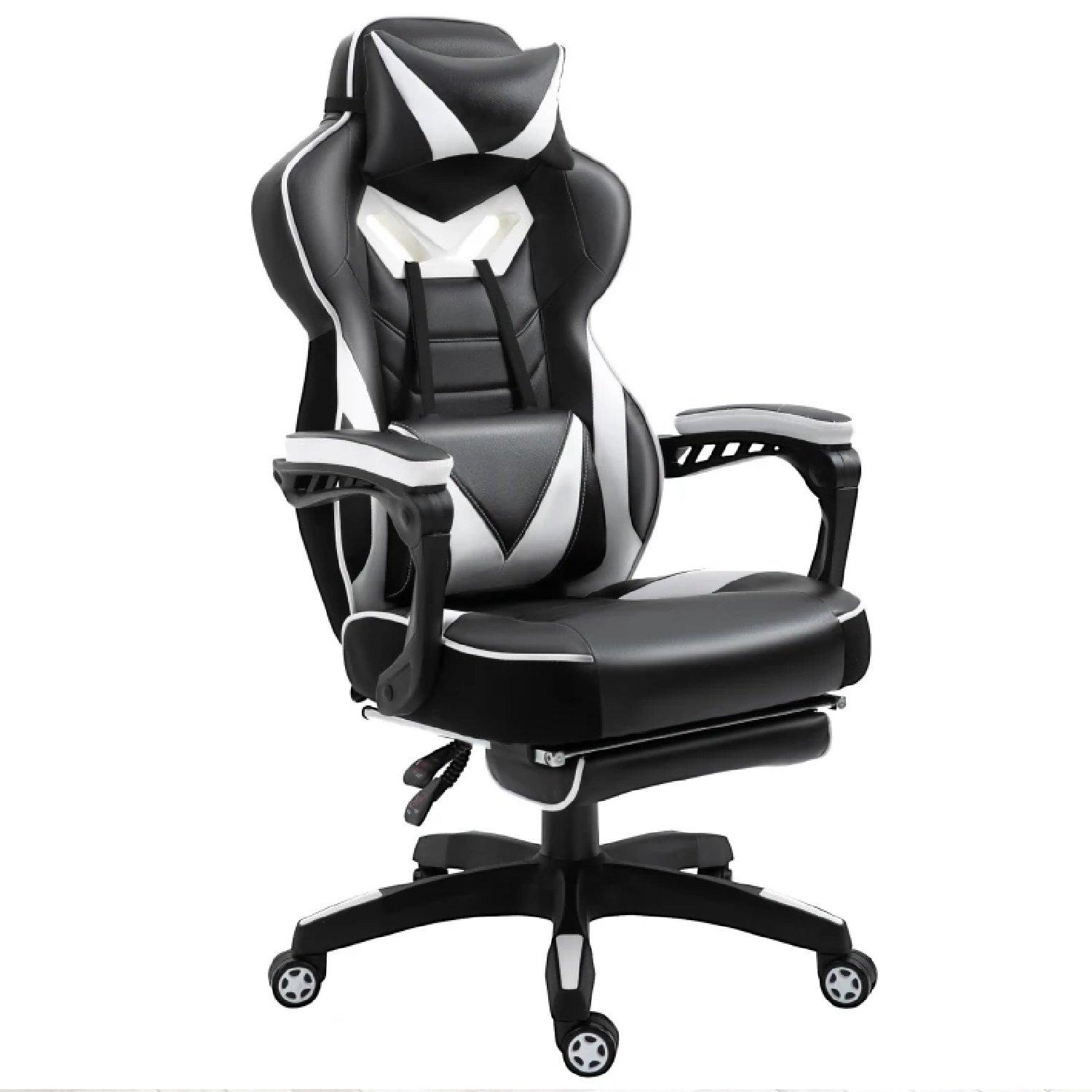 Fulfil your need for some serious style with this gaming chair with footrest from Vinsetto. It's fitted with thick sponge for comfort and wrapped in sleek faux leather with contrasting panels. Comfortable in design, it features a high back, armrests, a five-wheel base and can swivel around 360°. Whether it's work or play, the gaming chair for adults is a good choice.