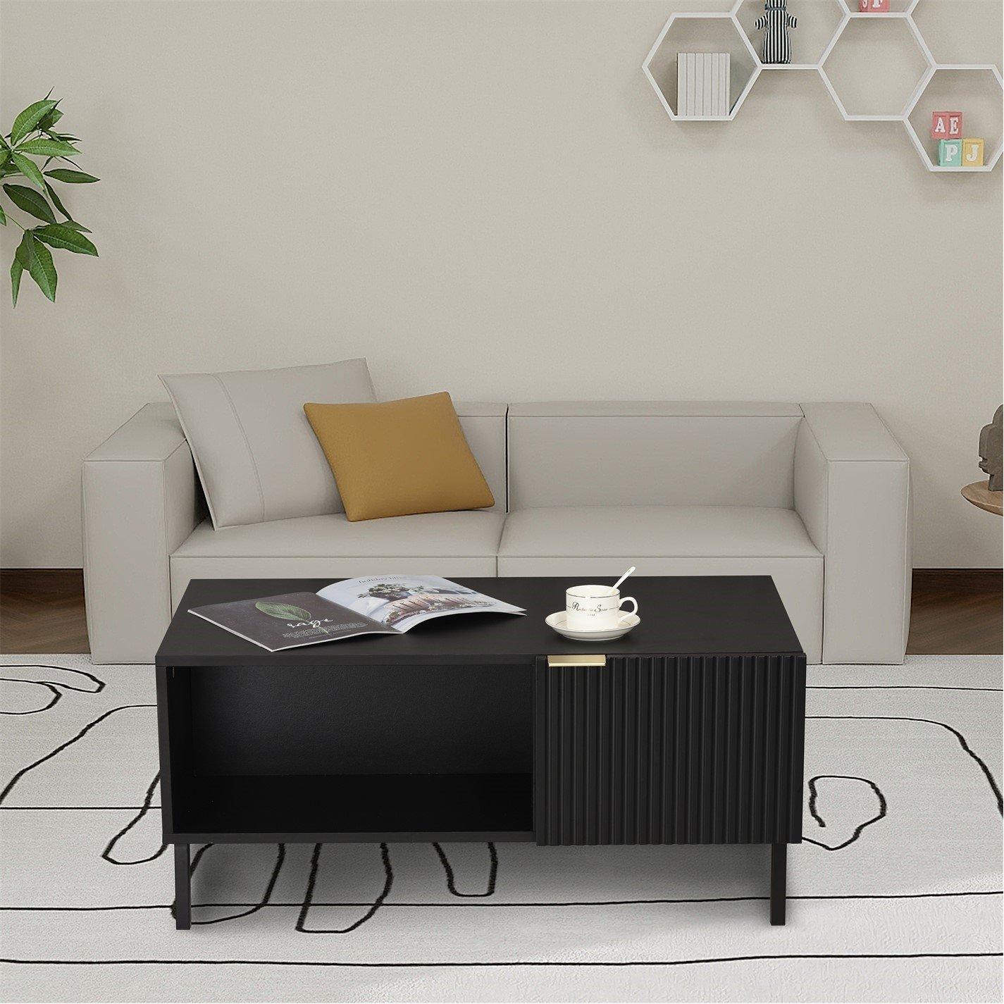 Discover the timeless elegance and functionality of our coffee table in elegant black matt with golden color handle, it offers ample floor space and adds a stylish touch to your home. The clean lines and the simple colouring underline the timeless design and allow it to be harmoniously integrated into a wide range of interior styles. Whether in the living room, hallway or bedroom, it will be an eye-catcher and enriches any room with its timeless appearance. Brighten up your home with the coffee table and bring order and aesthetics to your life.
