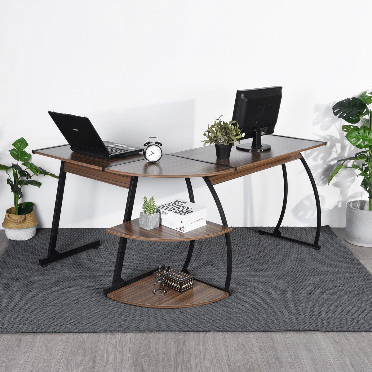AMPLE SPACE AVAILABLE: The desk for home office is large and spacious with 2 extra shelves which can help you organise office and stationery supplies, making them immediately at hand. L-shaped tabletop makes it convenient for you to put two computer screens or put some frequently used documents, so that work, study or game can be more smooth