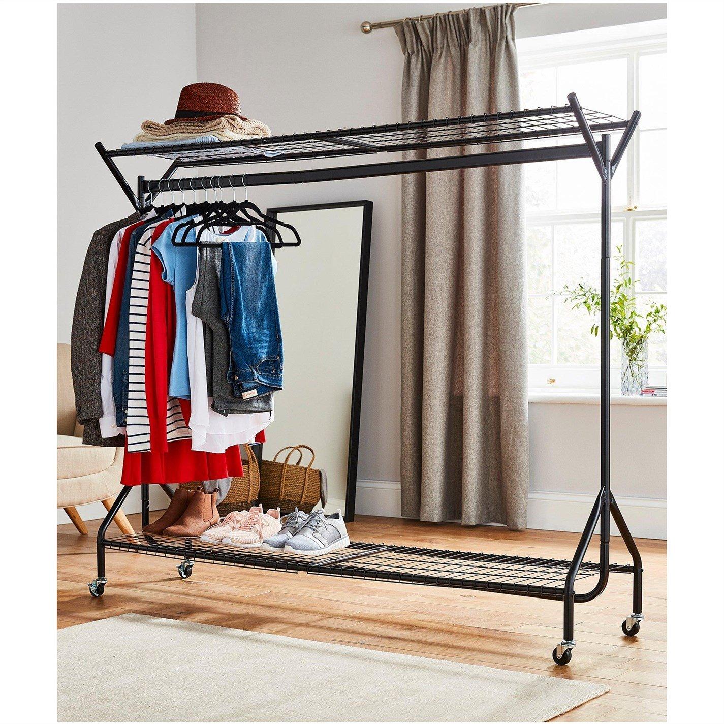 Perfect for those on the go, this rail is quick to dismantle and reassemble. Enjoy the convenience of sturdy mesh shelves for shoes and hats, enhancing your organizational prowess. This clothes rail comes with a 1-year manufacturer's warranty, ensuring durability and peace of mind for your storage needs. Elevate your storage game with our efficient and reliable all-in-one clothes rail solution!