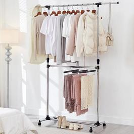 Double Clothes Rail Extended Top Rail Adjustable Height Black