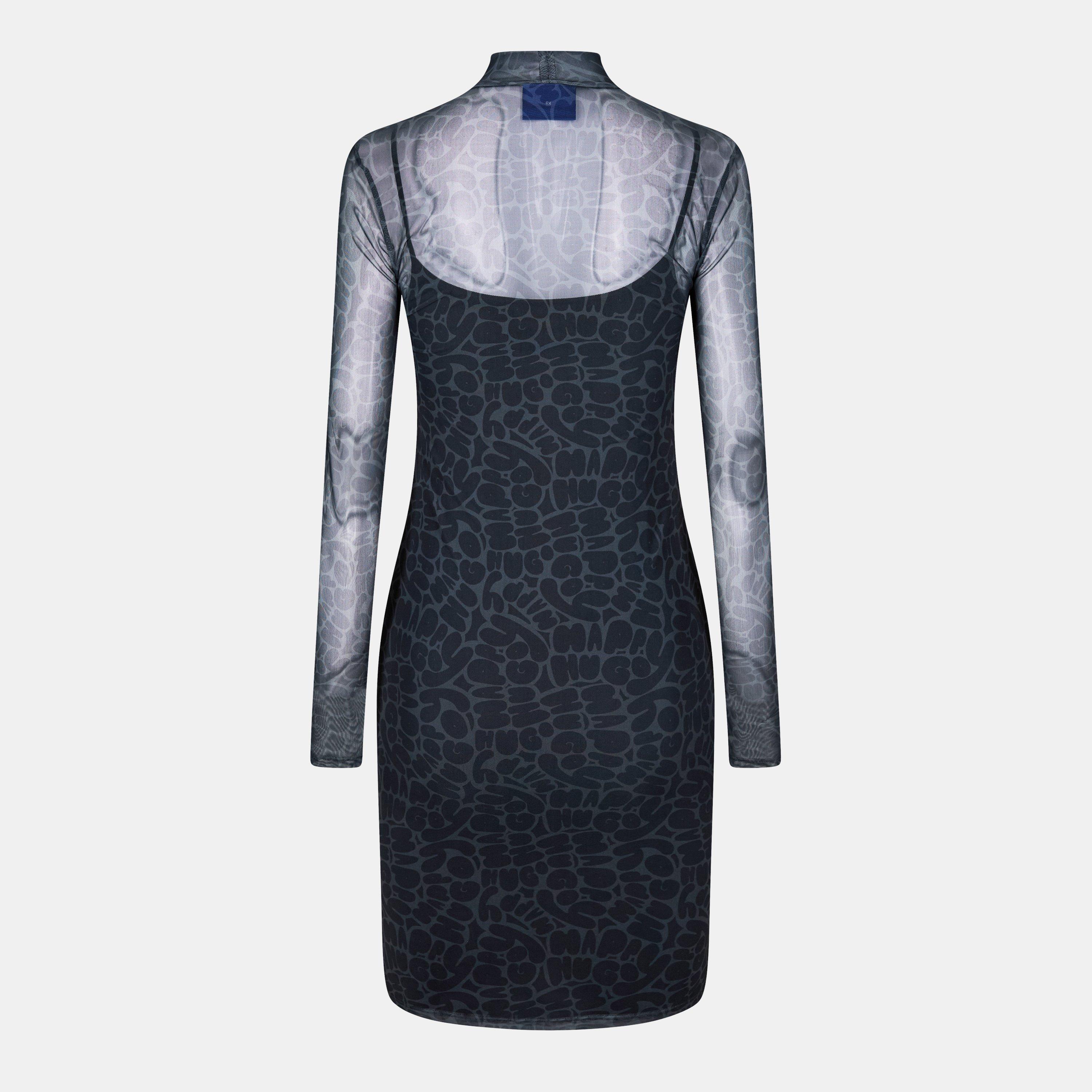 Hugo's Noella Mini Dress features a tailored shape with clean lines and structured proportions.