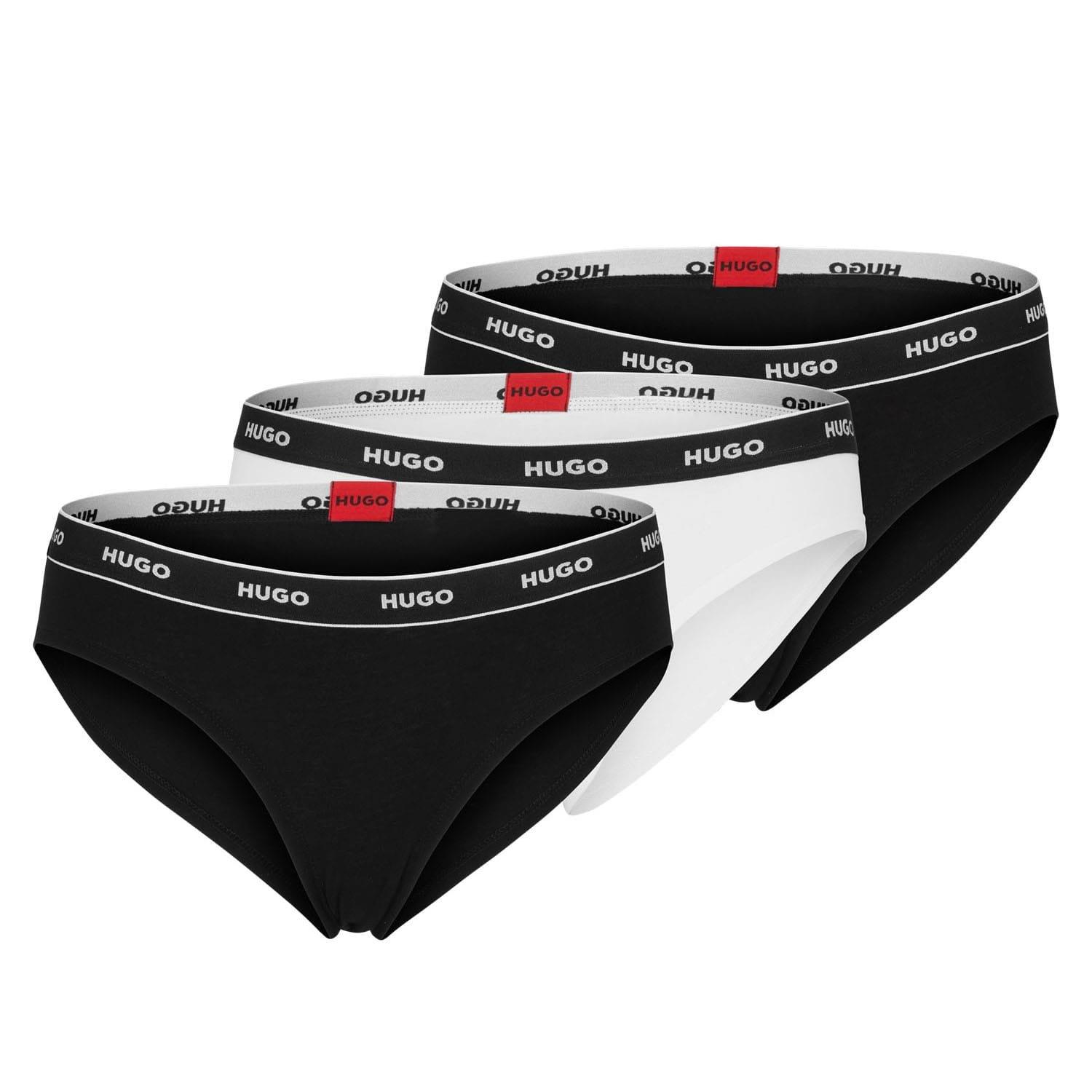 Womens HUGO Three Pack of Stretch Cotton Briefs wtih Logo Waistband in white - black