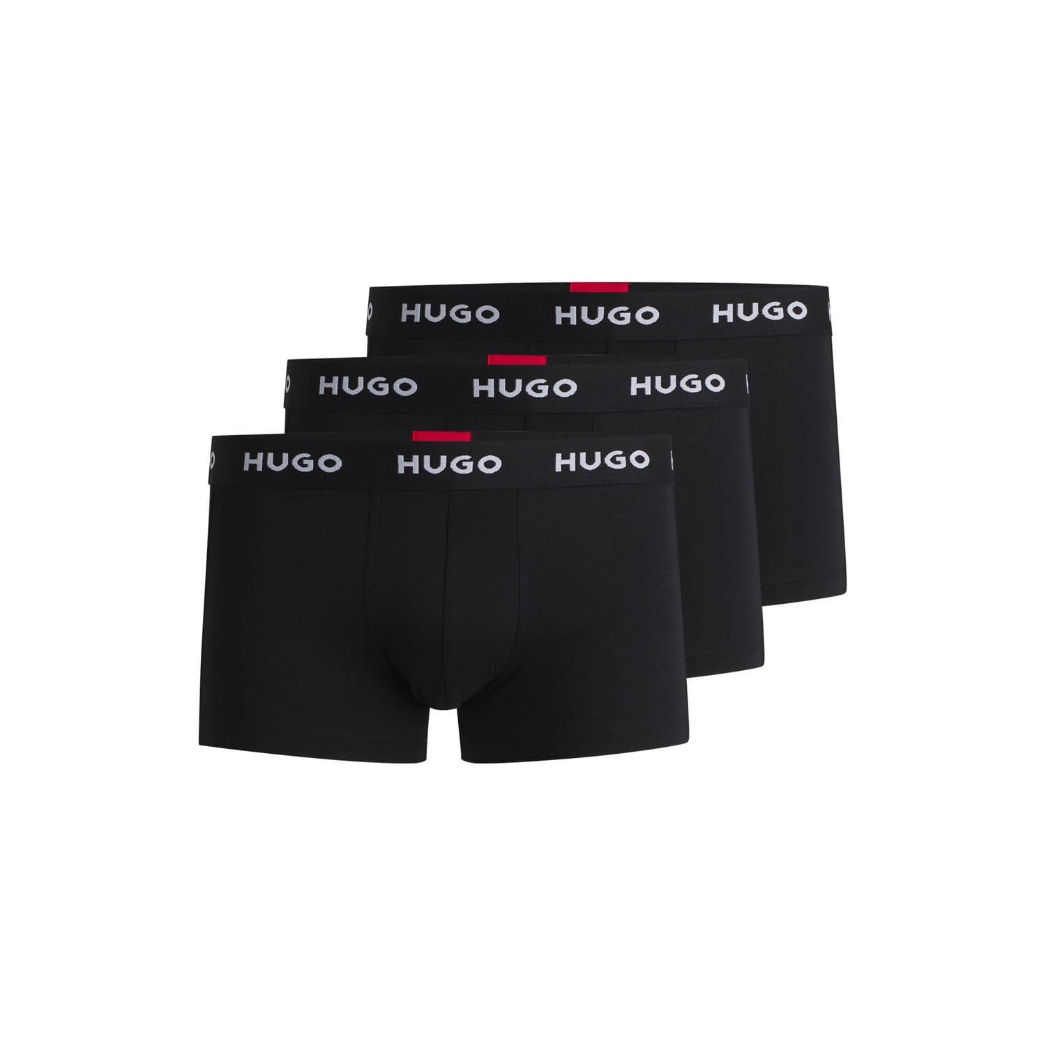 Mens HUGO Three Pack of Stretch-Jersey Trunks with Logo Waistbands in black