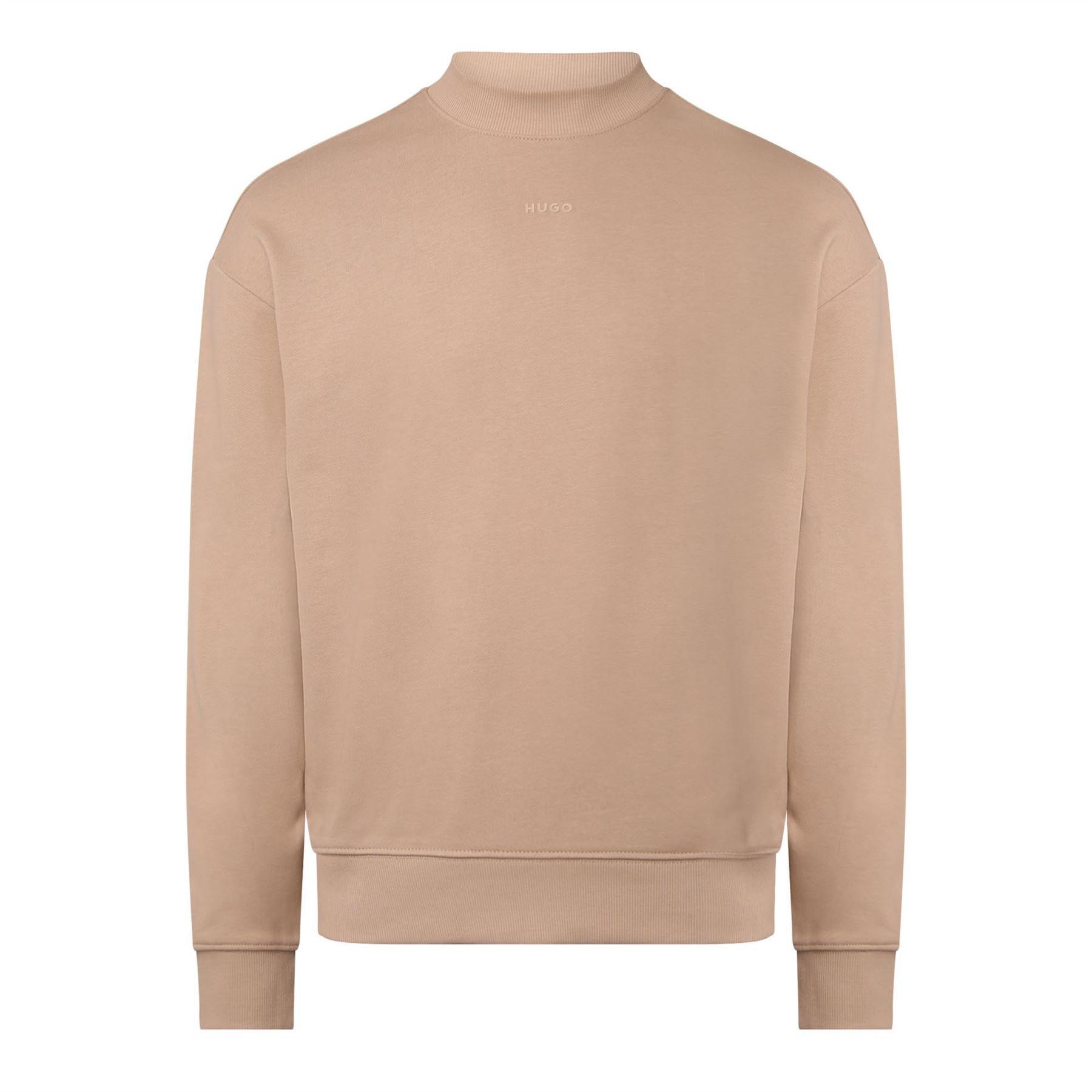 Mens HUGO Dapocrew Relaxed Fit Sweatshirt in Cotton Terry with logo print in medium beige.