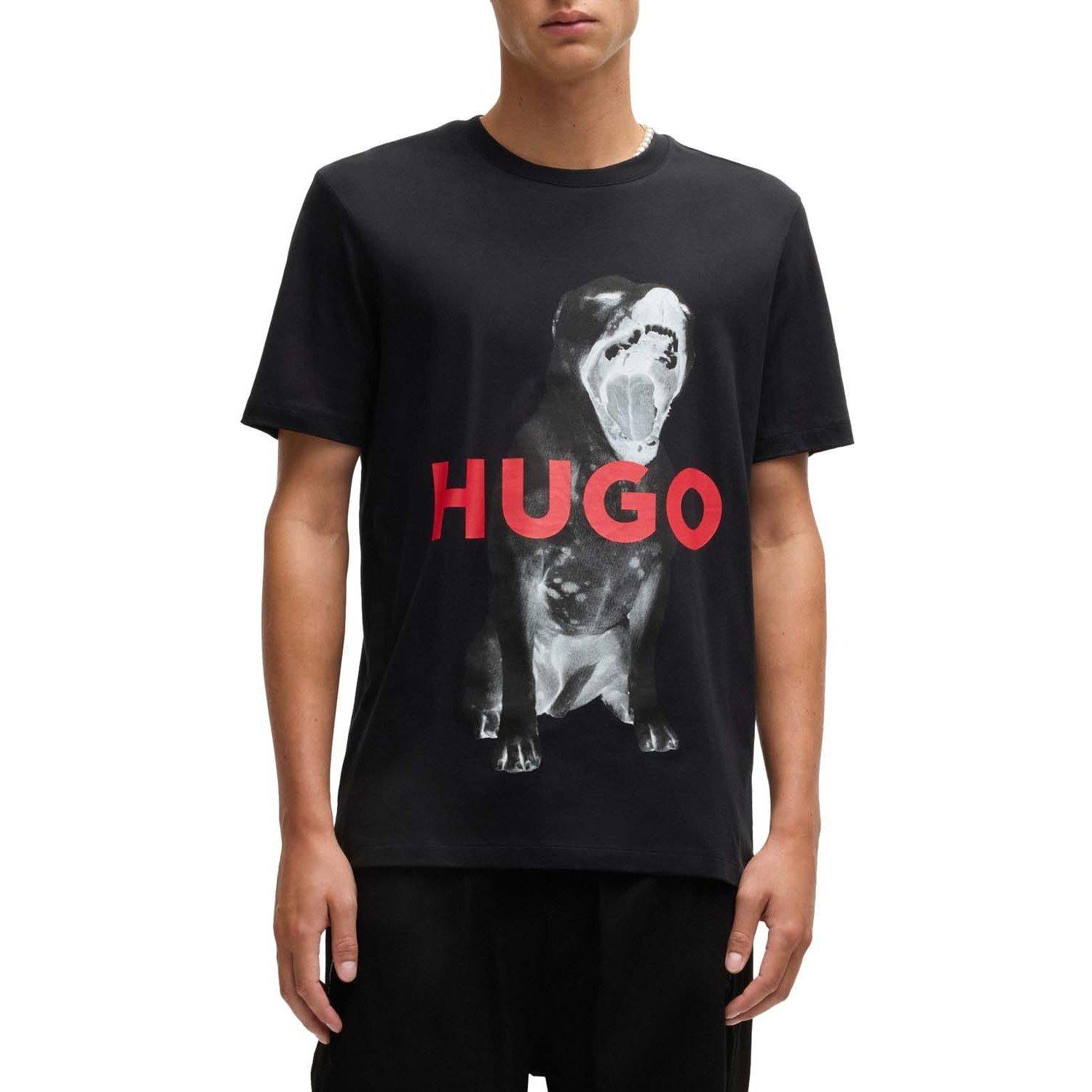 Mens Hugo Dayaking Animal Graphic T- Shirt in black.