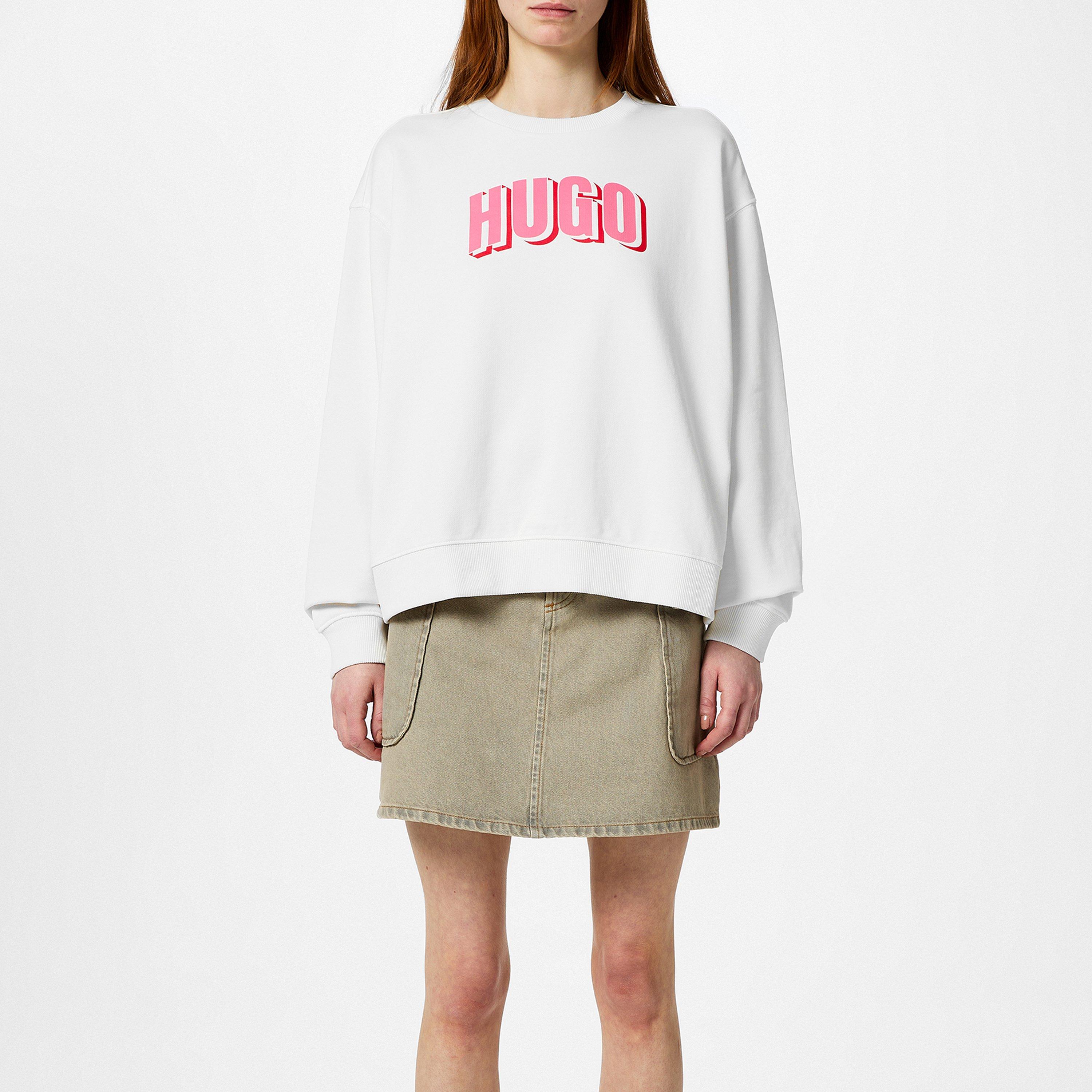 Revitalise your casual staples with the Deroxina Crew Sweatshirt from HUGO. Expertly crafted in premium polycotton jersey, this women's sweater is ideal for everyday wear, whether relaxing at home after a busy day, meeting friends for a coffee, or running errands.