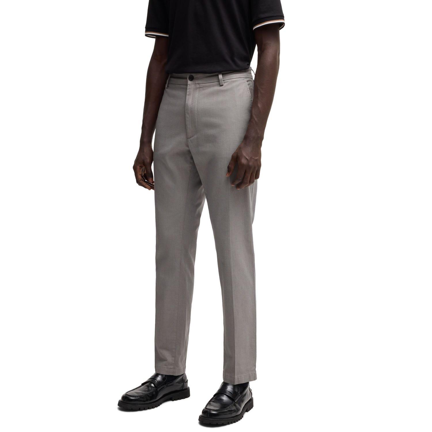 Button and zip closure. French pocket. Welt pocket. Regular rise. Stretch. Tapered leg. Regular fit.