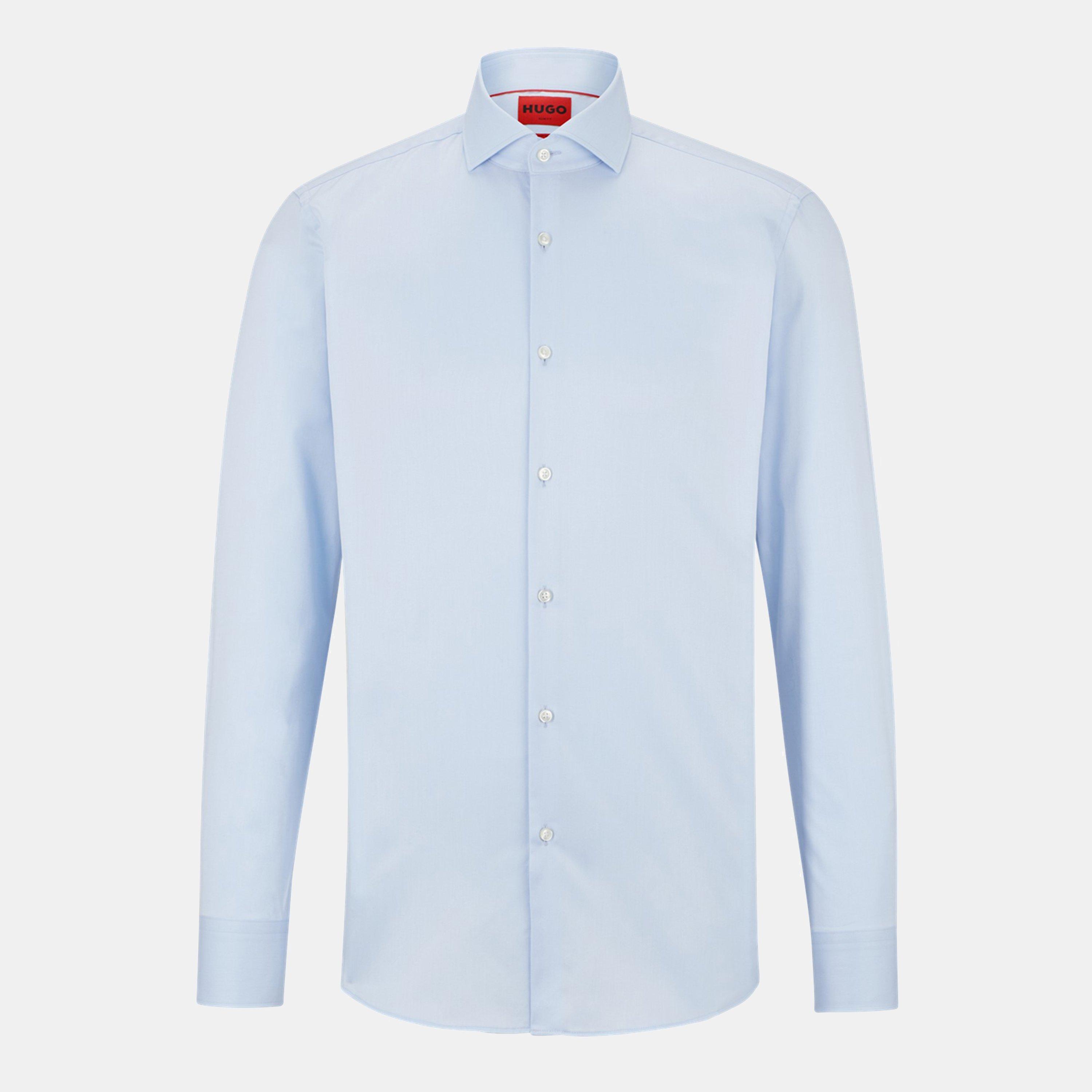 A versatile shirt by HUGO Menswear, topped with a modern spread collar. Ideal for any occasion from business to formal events, this long-sleeved shirt is cut to a streamlined fit in pure-cotton twill for a refined look and feel. The fabric features an easy-iron finish to deliver low-maintenance style and softness against the skin.