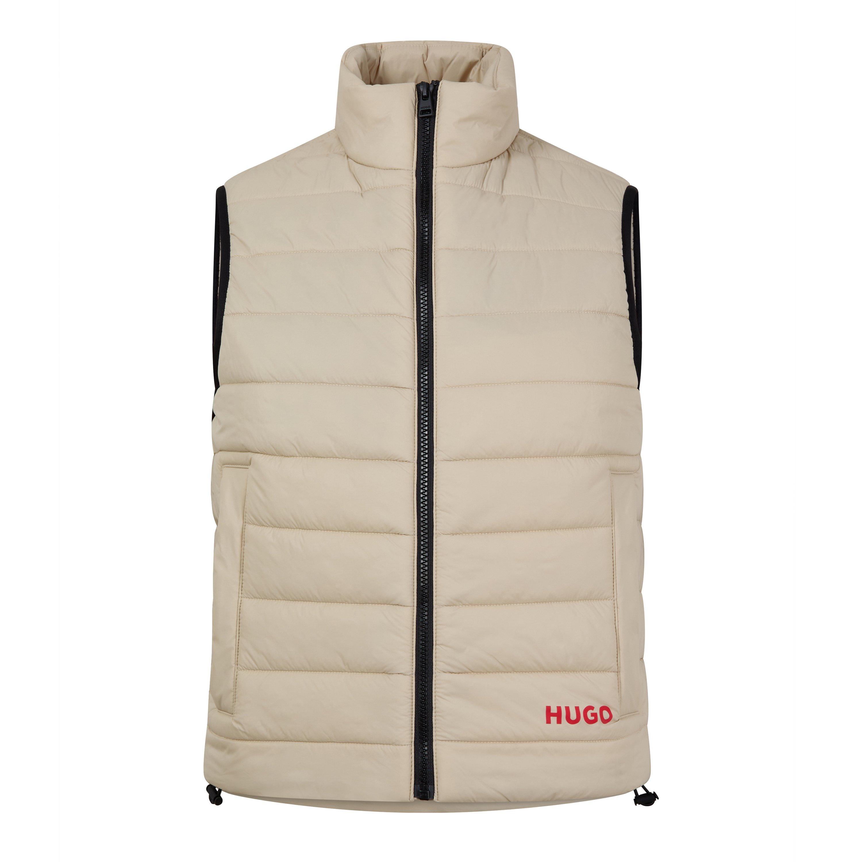 The Hugo Brentino Sleeveless Full Zip Gilet offers lightweight adaptability for your transitional wardrobe. Featuring adjustable bungee cords at the bottom edge for a customised fit and bold HUGO branding, this standard-fit vest merges practical design with contemporary fashion style.