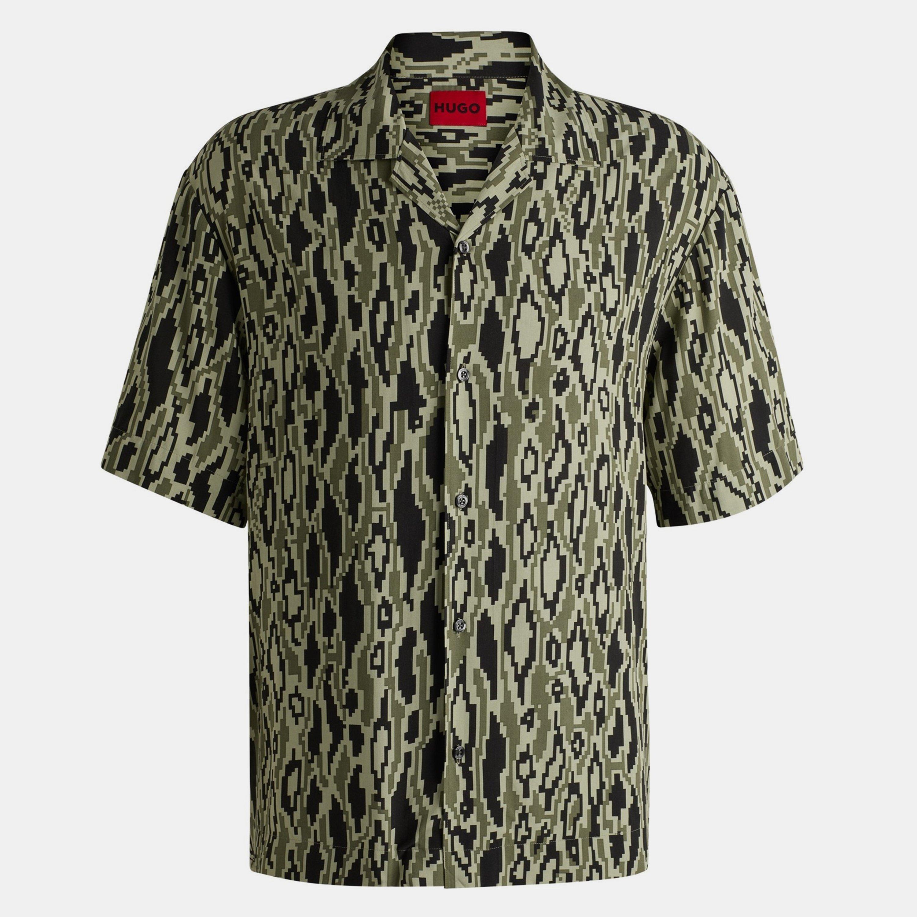 Hugo Men's Espino Red Geometric Short Sleeve Tailored Fit Shirt