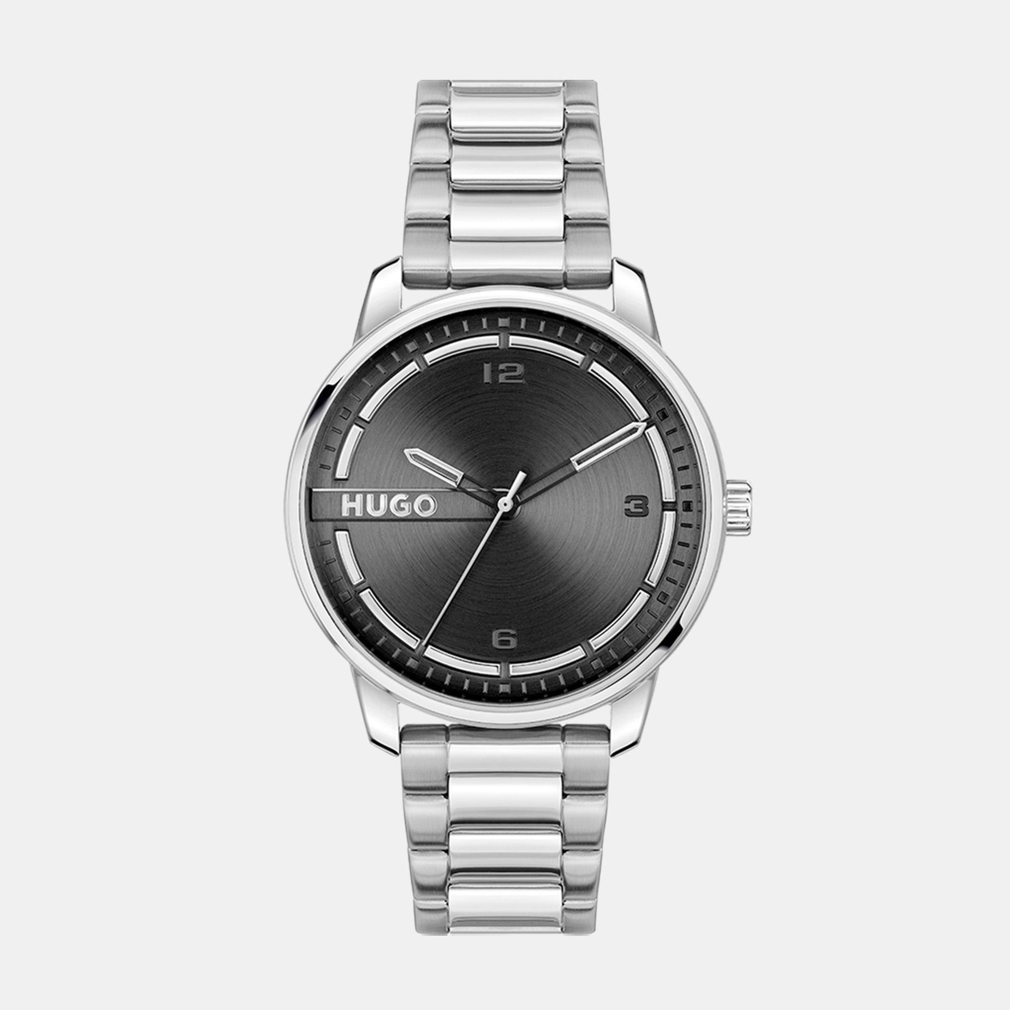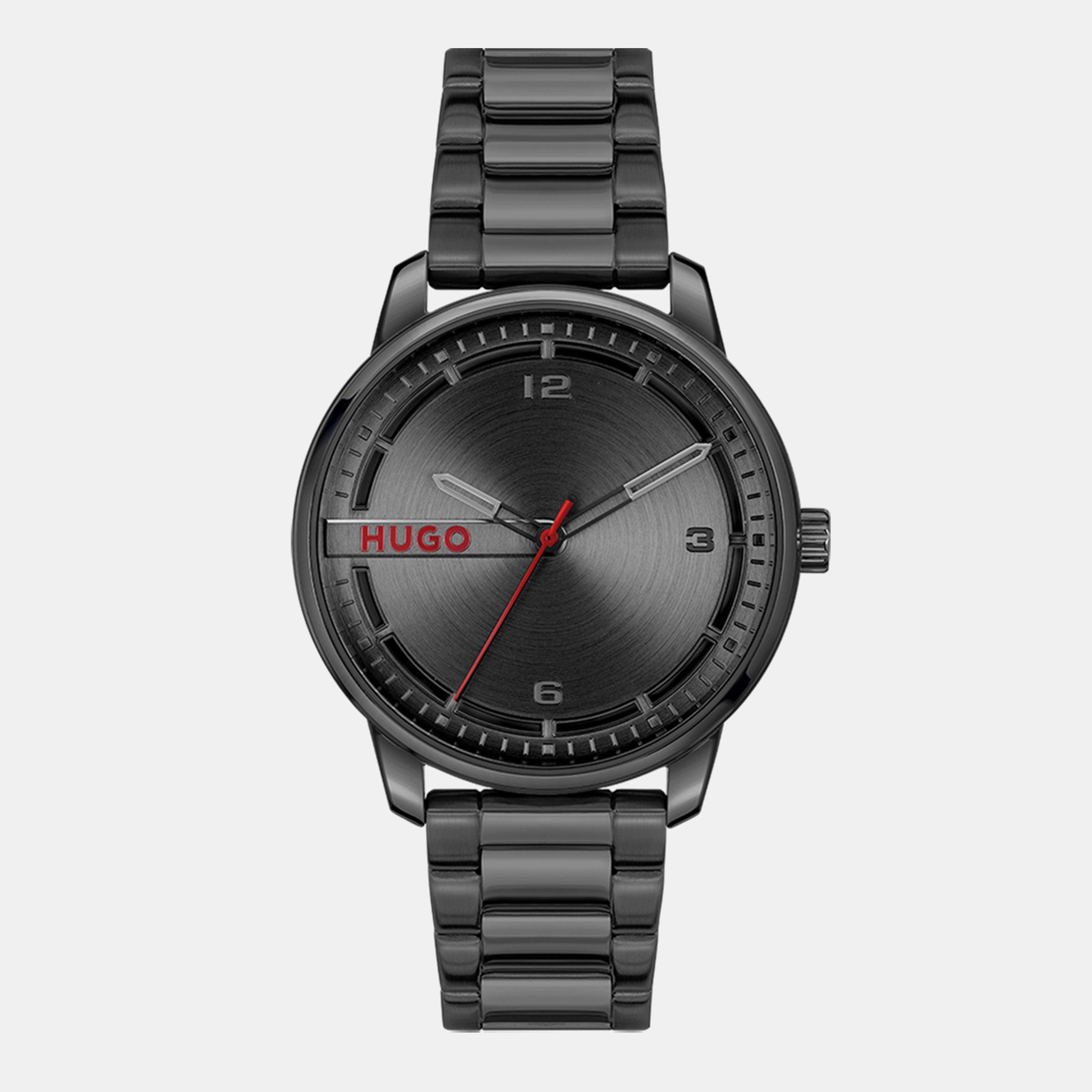 Take a classic and make it your own. HUGO’s approach to style comes to the fore once again with the #STAMP, a modern, minimalist timepiece designed for everyday wear. Showcasing a bold aesthetic, the watch features a branded plate at 9 o’clock alongside moulded and applied details on the circular-brushed dial. This effortlessly stylish three-hand model arrives in a choice of : A 42mm stainless steel case, black dial, stainless steel bracelet and push button deployment. Water resistant to 3ATM A 42mm black IP case, black dial, black IP bracelet and push button deployment. Water resistant to 3ATM