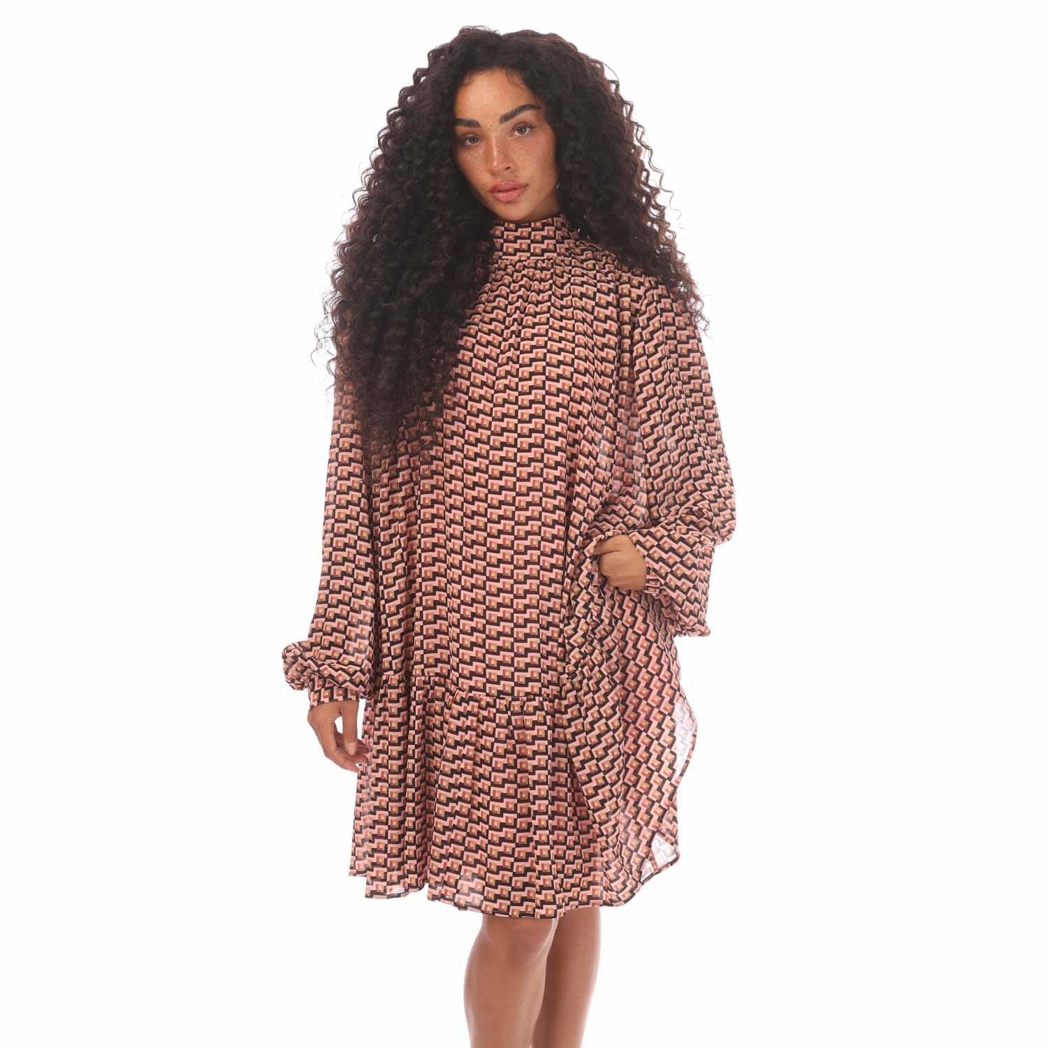 Womens HUGO Kesura-1 Dress in multi colour. - Stand collar. - Back zipper. - 2-button cuff. - Longer at the back. - All-over pattern. - Ruffled features. - Draped-gathered. - Relaxed fit. - 60% Polyester (Recycled) 40% Polyester. - Ref: 50482571965