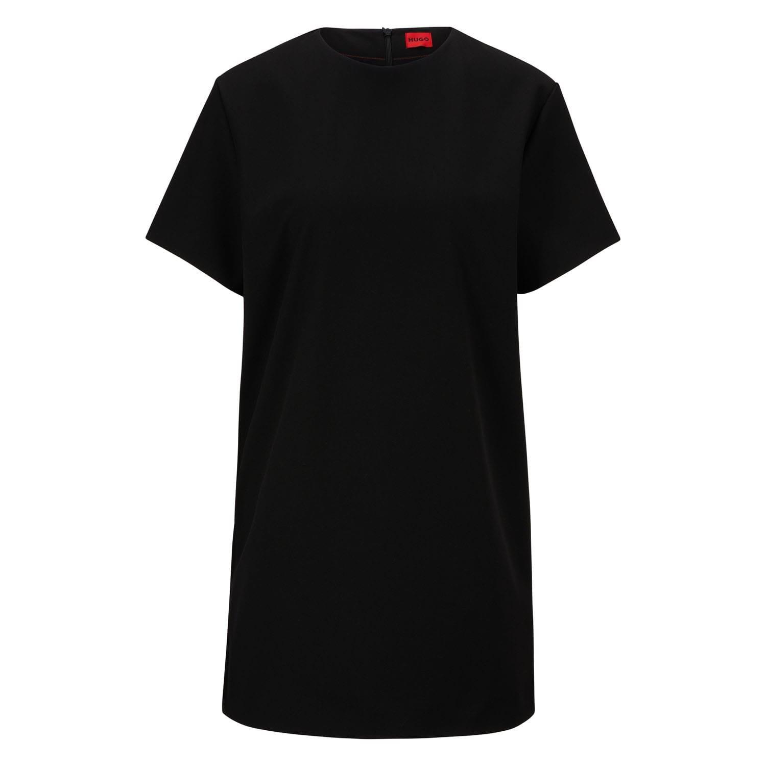 Womens HUGO Kulianna Dress in black. - Crew neck. - Short sleeves. - Back zip fastening. - Relaxed fit. - 71% polyester 23% viscose 6% elastane. Machine washable. - Ref: 50492623-001