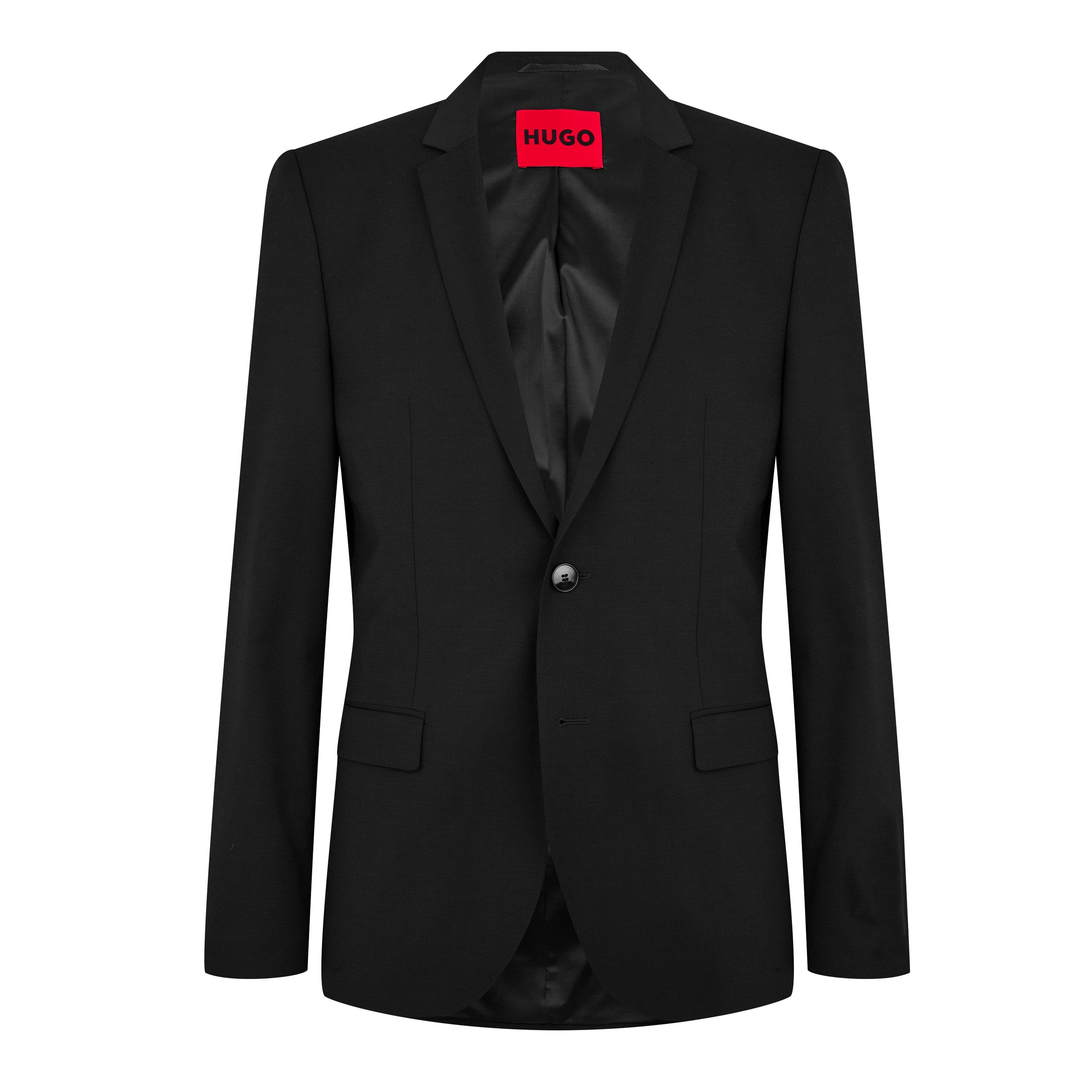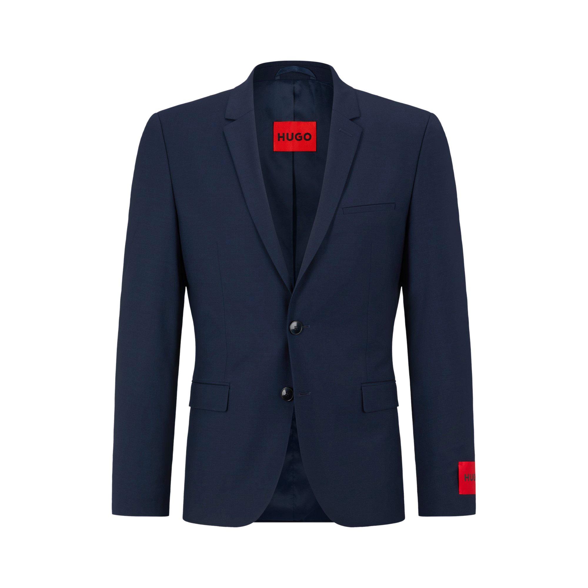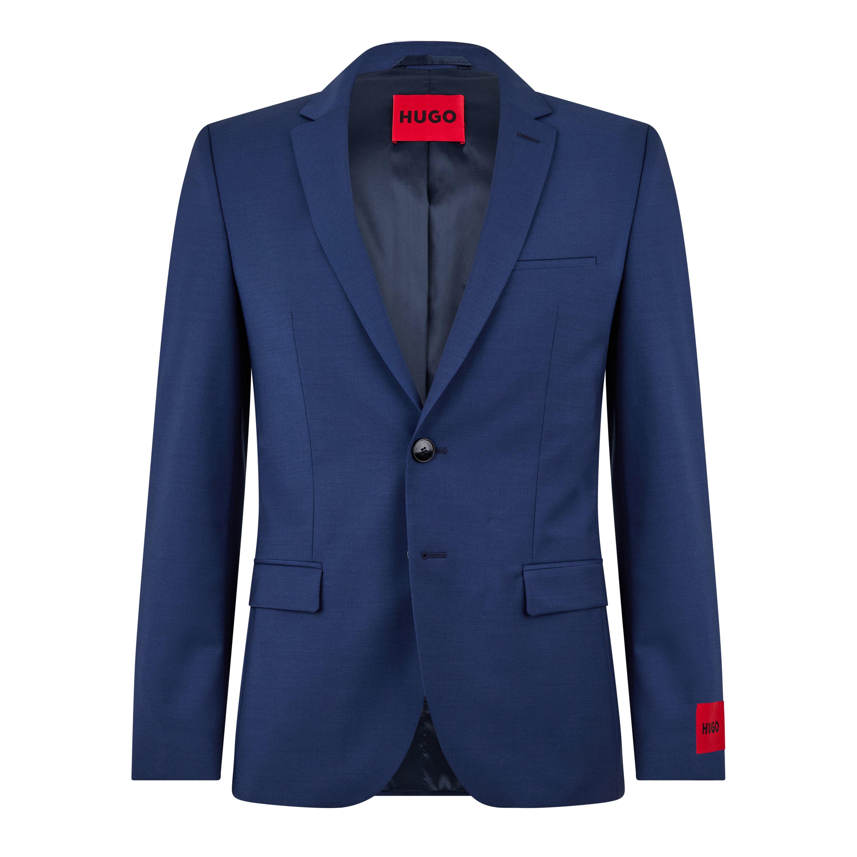 Sharp tailoring meets contemporary design in this slim-fit suit jacket from HUGO. The clean lines and modern silhouette of the Arti suit jacket create a streamlined profile that works for both business and formal occasions. A notched lapel and single-button fastening maintain classic appeal, while the structured shoulders provide a sharp finish. The signature HUGO red label detailing adds a distinctive touch to this essential wardrobe piece.
