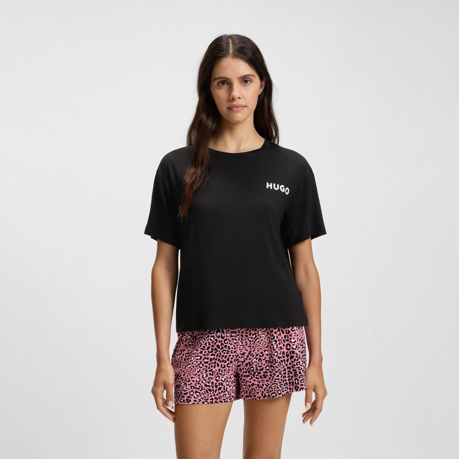 Womens HUGO Unite Contrast-Logo Pyjama T-Shirt in Stretch Jersey in black Printed with a contrast logo this HUGO Womenswear pyjama T-shirt is a comfy way to relax. - Laid-back fit. - Super-soft stretch jersey. - Crew neck - Printed logo at left chest - 93% Viscose 7% Elastane. Machine washable. - Ref: 50490707-001