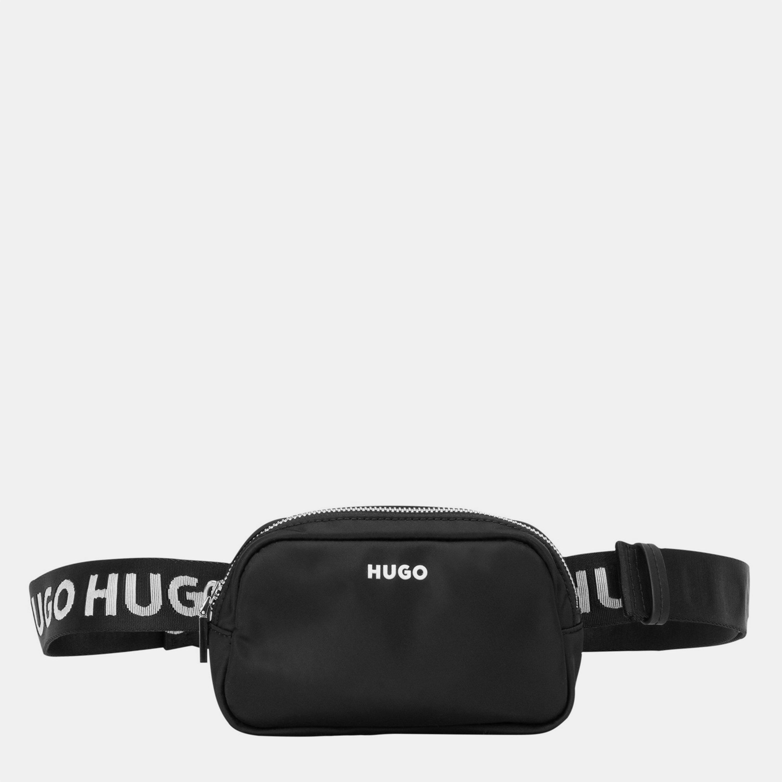 Contemporary street style gets a practical update with this HUGO belt bag. The branded strap makes a statement while the compact design holds daily essentials close. A silver-toned zip closure opens to reveal ample space for your phone, cards and keys, making this bag perfect for hands-free movement through busy days.