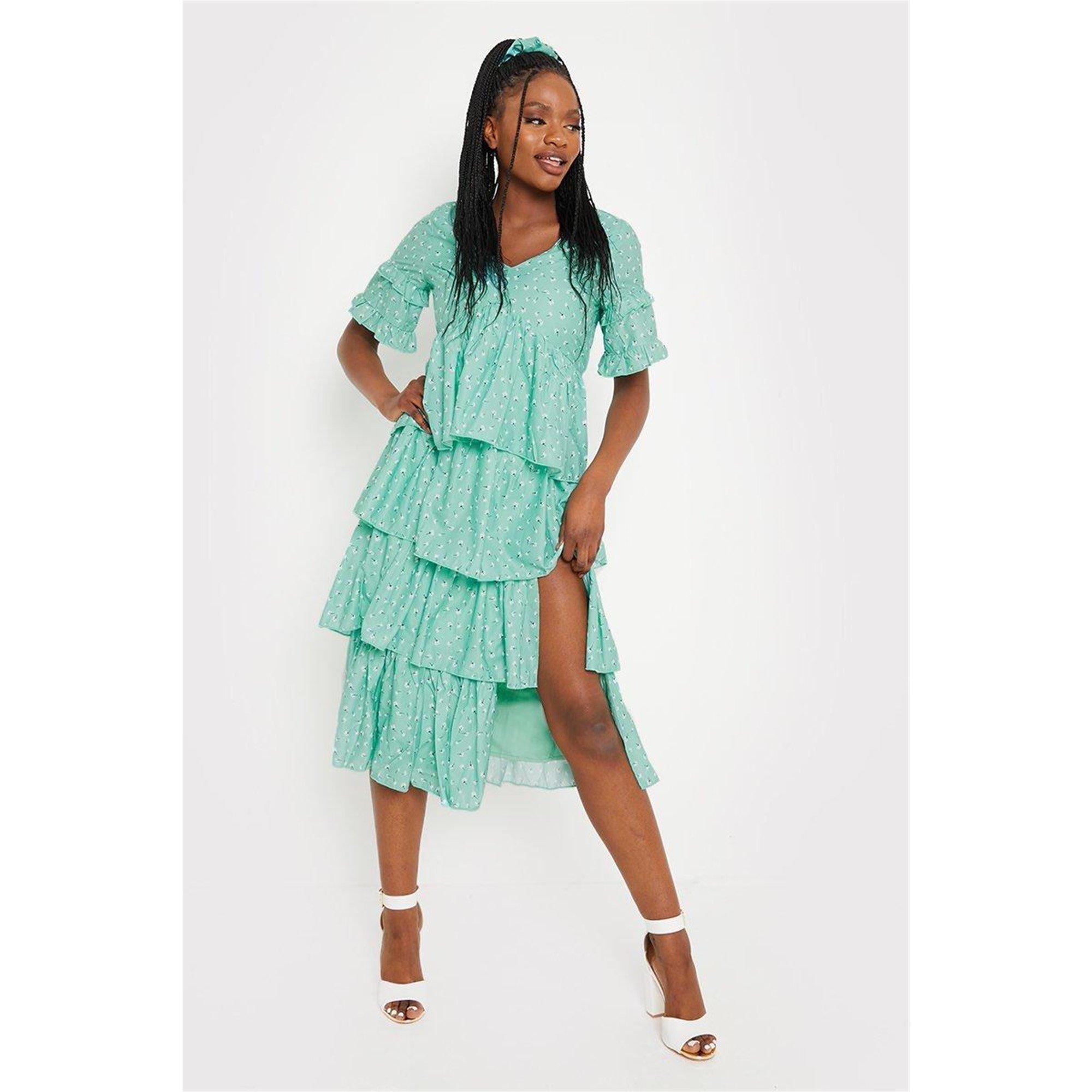 Elevate your wardrobe with the In The Style Floral Split Frill Midi Dress. Featuring an all-over floral print creating an eye-catching visual appeal. From garden parties to stylish events, this dress is the perfect piece.