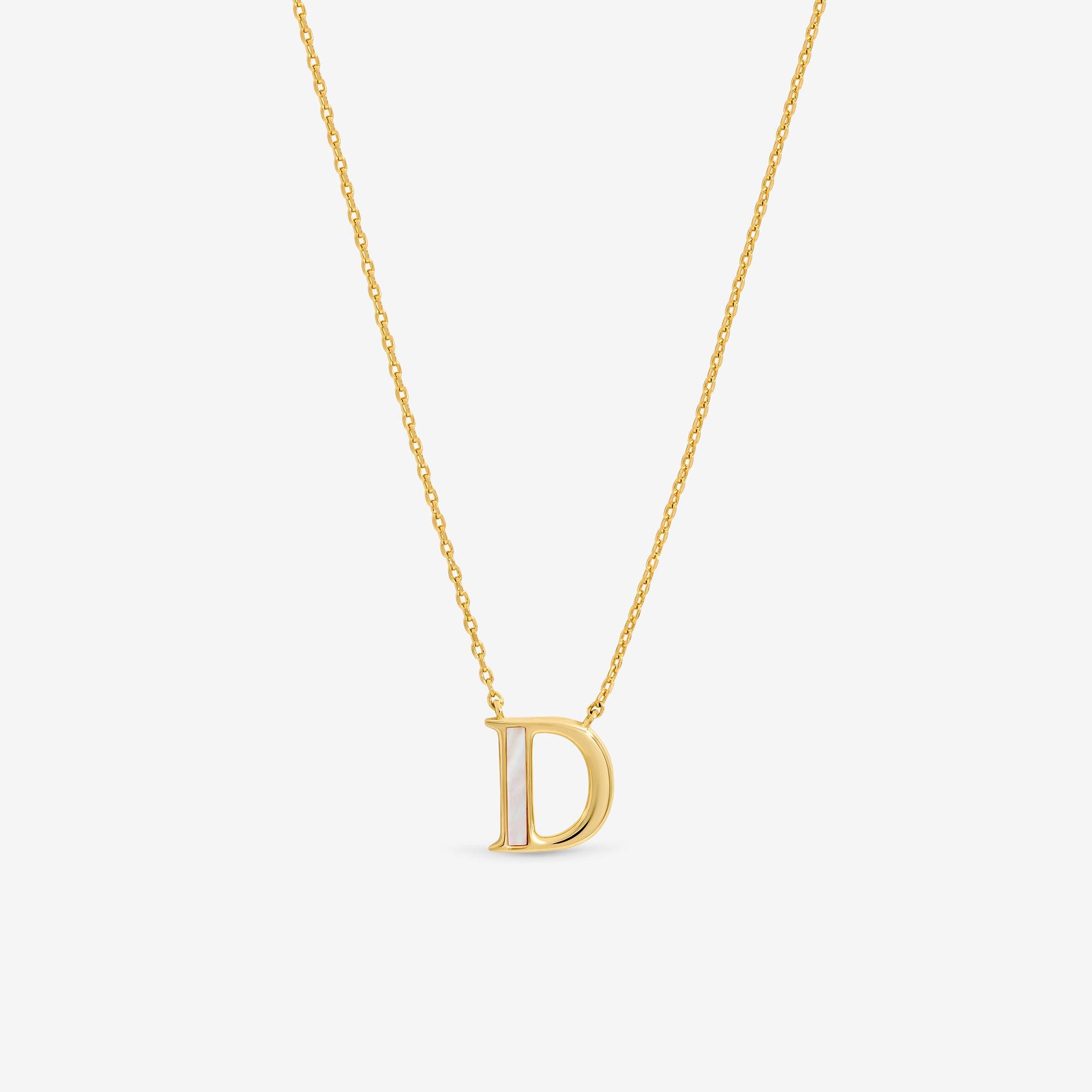 Our Inicio 14K Real Gold Plated and Mother of Pearl Initial 'D' Pendant is a simple but personal piece of jewelry. It features a gold-plated pendant with a beautiful mother of pearl feature. This necklace adds a subtle, classy touch to your everyday look and makes a great personalized gift! Fastening: Lobster Clasp. Width dimension: 10mmLength dimension: 15mm. Material: 14K Gold Plated Base Metal.