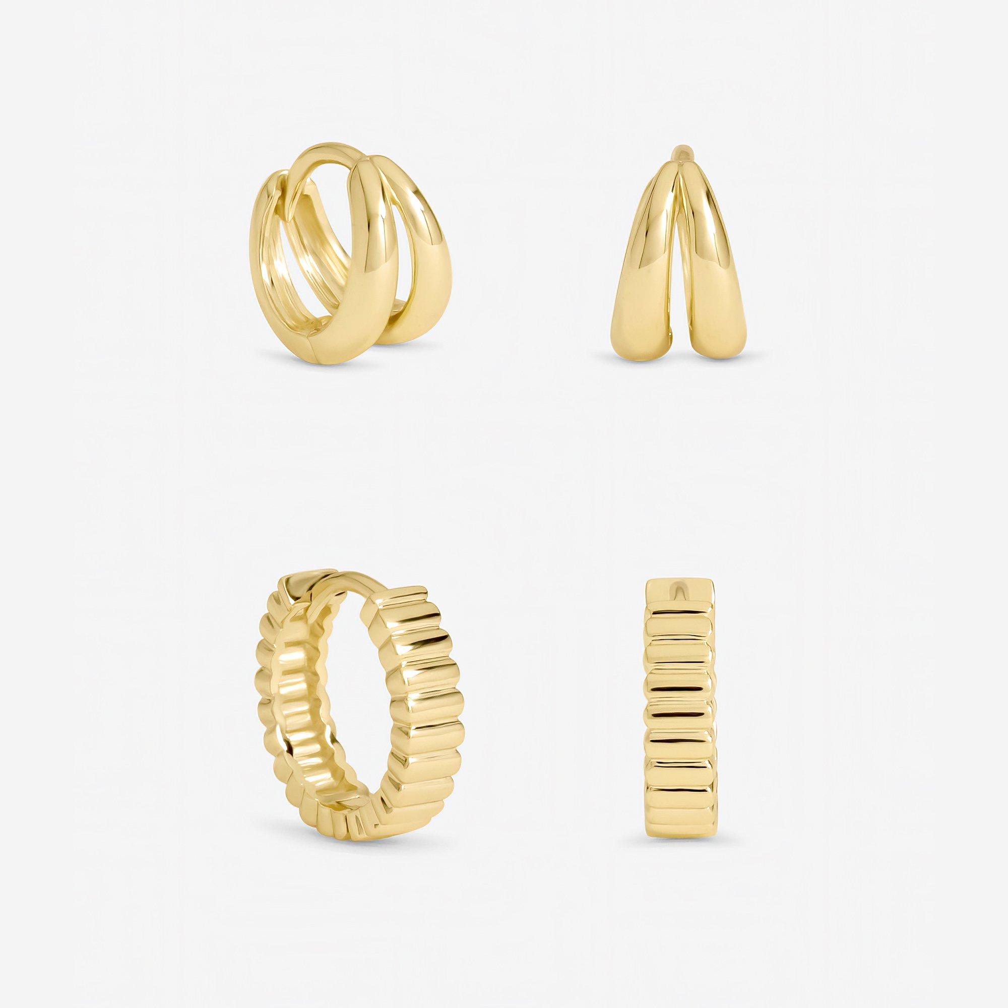 Our Inicio Gold Plated Textured Hoop Multipack Earrings are designed for the everyday, featuring beautifully textured hoops to add depth and shine to your look. Stack together or wear Solo. Fastening: Hoop. Width dimension: 5mm, length dimension: 5mm. Material: Gold plated base metal.