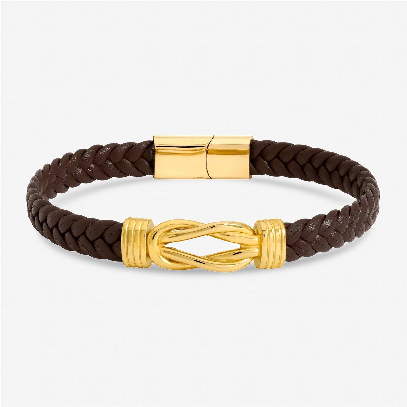 Our Inicio Men's Brown Plaited Bracelet is crafted for durability, featuring a sleek woven and polished design, this is perfect for the everyday Fastening: Snap closure. Chain length: 8, extender length: 1. Width: 10mm, length: 203.2mm. Material: Stainless steel.
