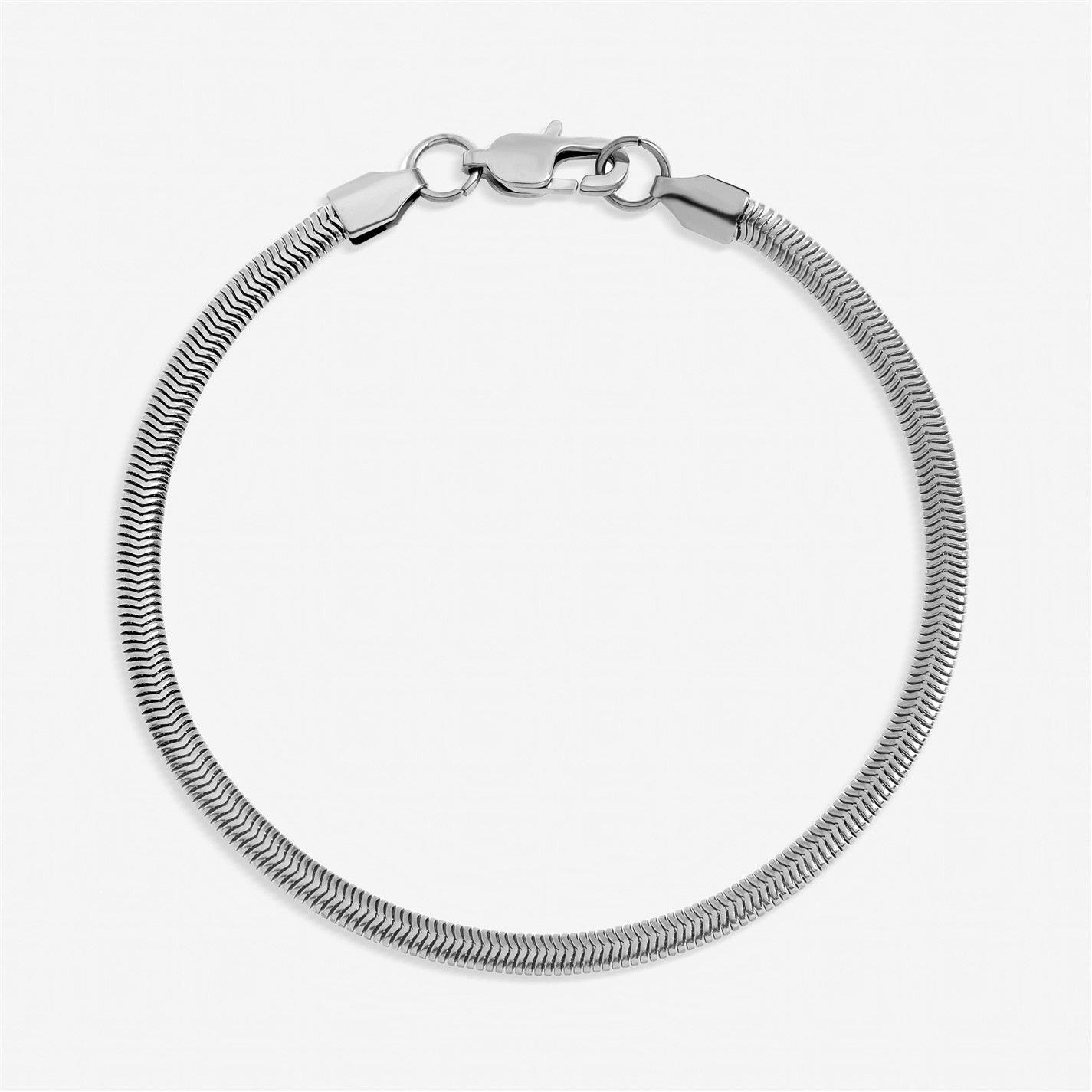 Our Inicio Men's Steel Waterproof Snake Chain Bracelet is made to be durable and sleek, this design is resistant to water and daily wear, making it perfect for active lifestyles. A versatile, minimalist accessory, it adds a bold, contemporary edge to any outfit. Fastening: Lobster clasp. Chain length: 8. Width: 4mm, length: 203.2mm. Material: Stainless steel.