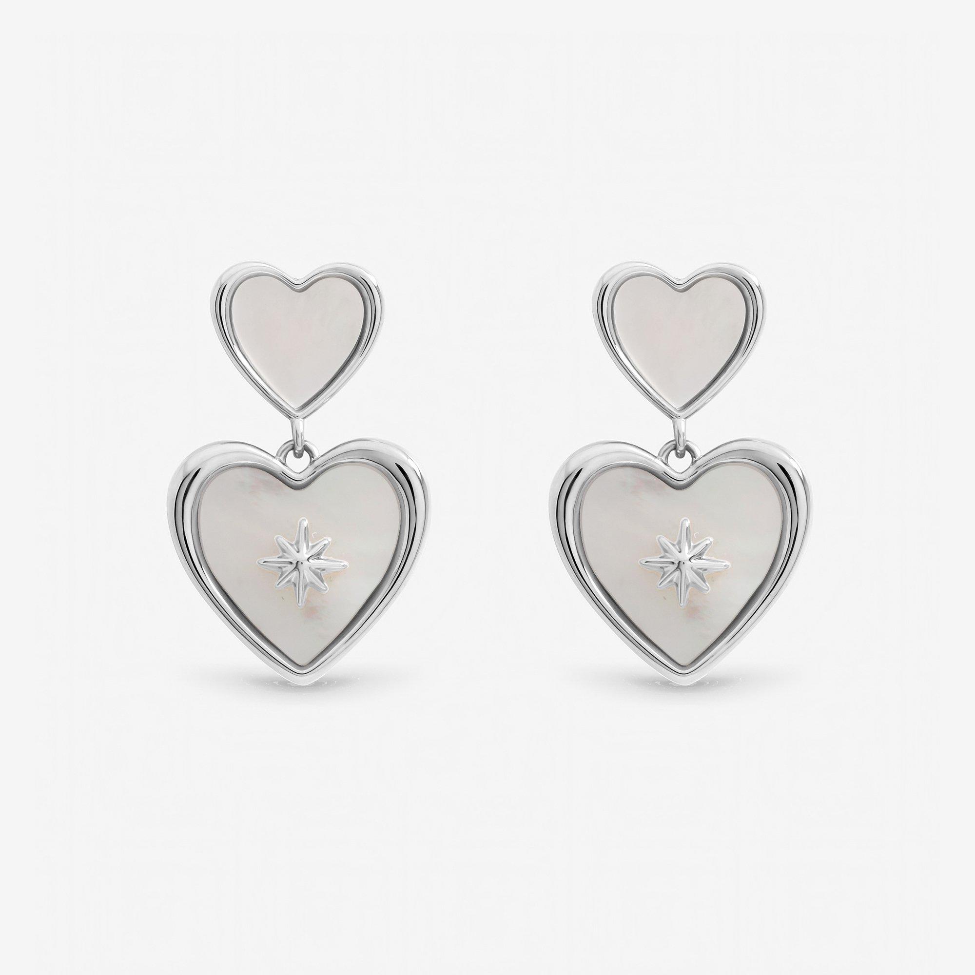 Our Inicio Mother of Pearl Celestial Heart Drop Earrings echo the beauty of the night sky. These elegant drops feature a softly iridescent mother of pearl inlay set within a delicate sterling silver plated heart. Finished with a tiny, sparkling star detail at the centre, the design hangs beautifully to catch the light. They offer gentle movement and celestial shine, perfect for adding refined elegance to your evening or daytime wear. Our 3 micron sterling silver plating uses a heavy, premium layer of silver that delivers a brighter finish, greater resistance to tarnish and wear, and significantly longer lasting quality than standard plated jewellery. Fastening: Post and bullet back. Width dimension: 13mm, length dimension: 25mm. Material: Sterling silver plated brass.