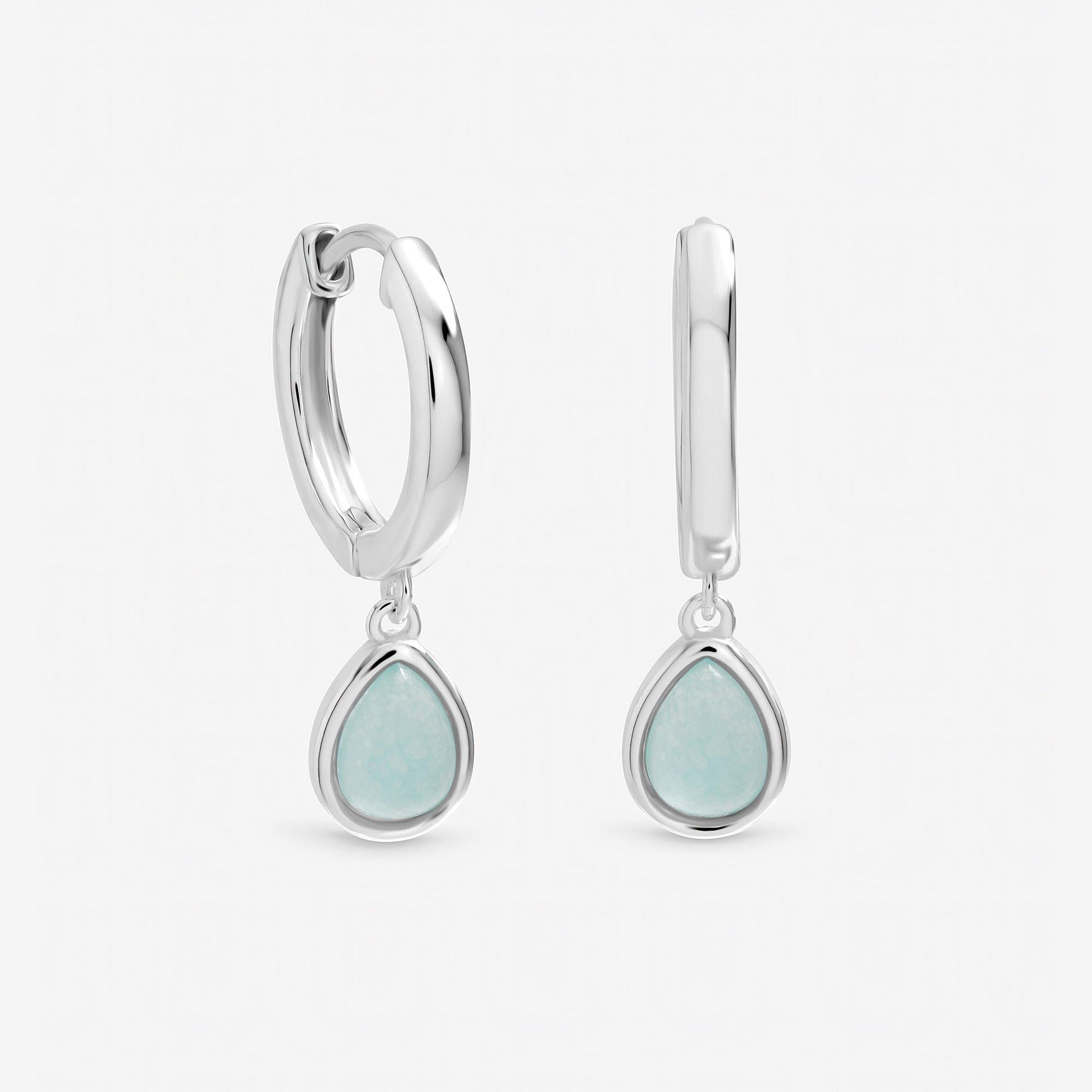 Our Inicio Turquoise Peardrop Charm Hoop earrings offer a beautiful pop of colour with an eye-catching design. These elegant hoops feature a delicately polished sterling silver plated hoop from which a vibrant turquoise peardrop charm is suspended. The smooth, bright stone adds a refreshing and striking detail. Perfect for adding a bohemian touch or a vibrant accent to your everyday Jewellery collection. Our 3 micron sterling silver plating uses a heavy, premium layer of silver that delivers a brighter finish, greater resistance to tarnish and wear, and significantly longer lasting quality than standard plated jewellery. Fastening: Hoop. Width dimension: 7mm, length dimension: 25mm. Material: Sterling silver plated brass.