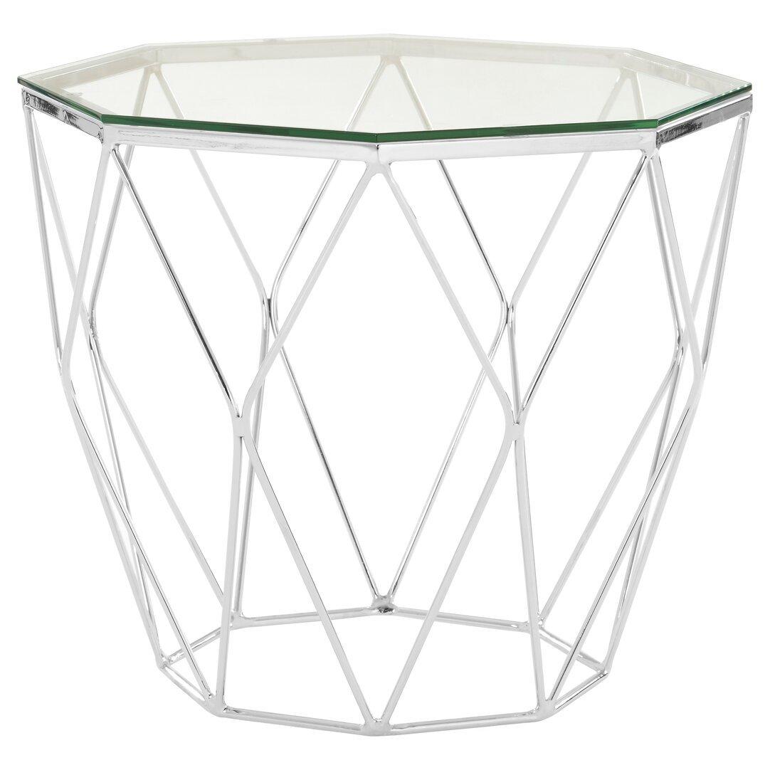 Interiors by Premier Allure Tempered Glass And Chrome Hexagon End Table