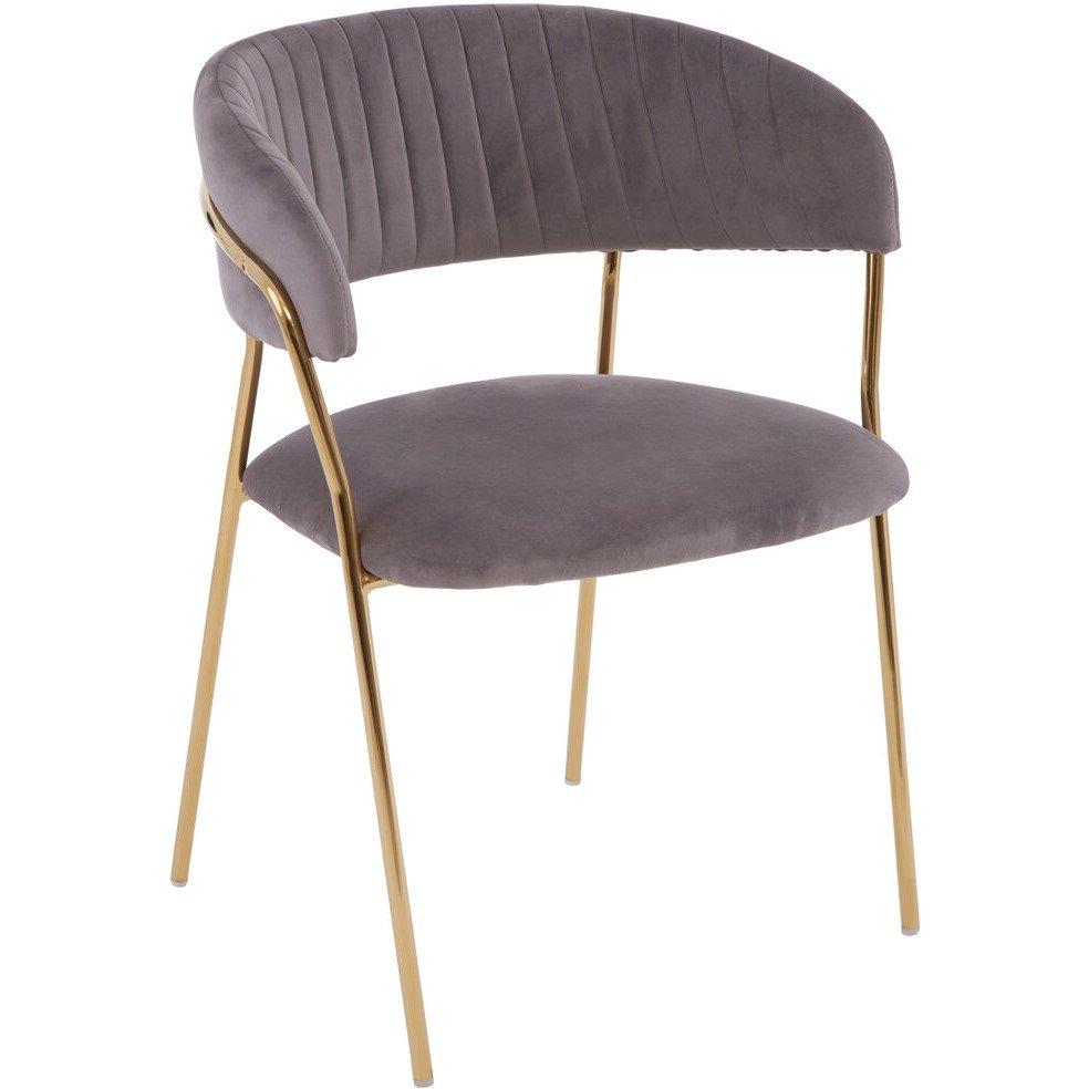 This chair exhibits contemporary elegance and glamour thanks to its gold finish metal legs in a simple and minimalistic appearance. The angular frame supports the padded seat and back covered in luxe mink velvet, while channel detail adds texture.