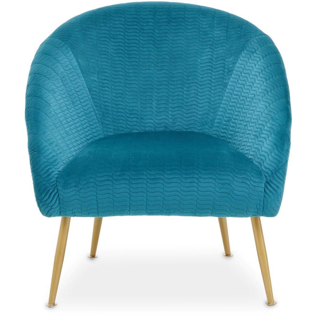 With plush blue velvet upholstery, this chair features a seamless curved back with a seat in thick cushioning. The sweeping armrests provide excellent comfort and support. The gold finish angular legs enhance the elegance.