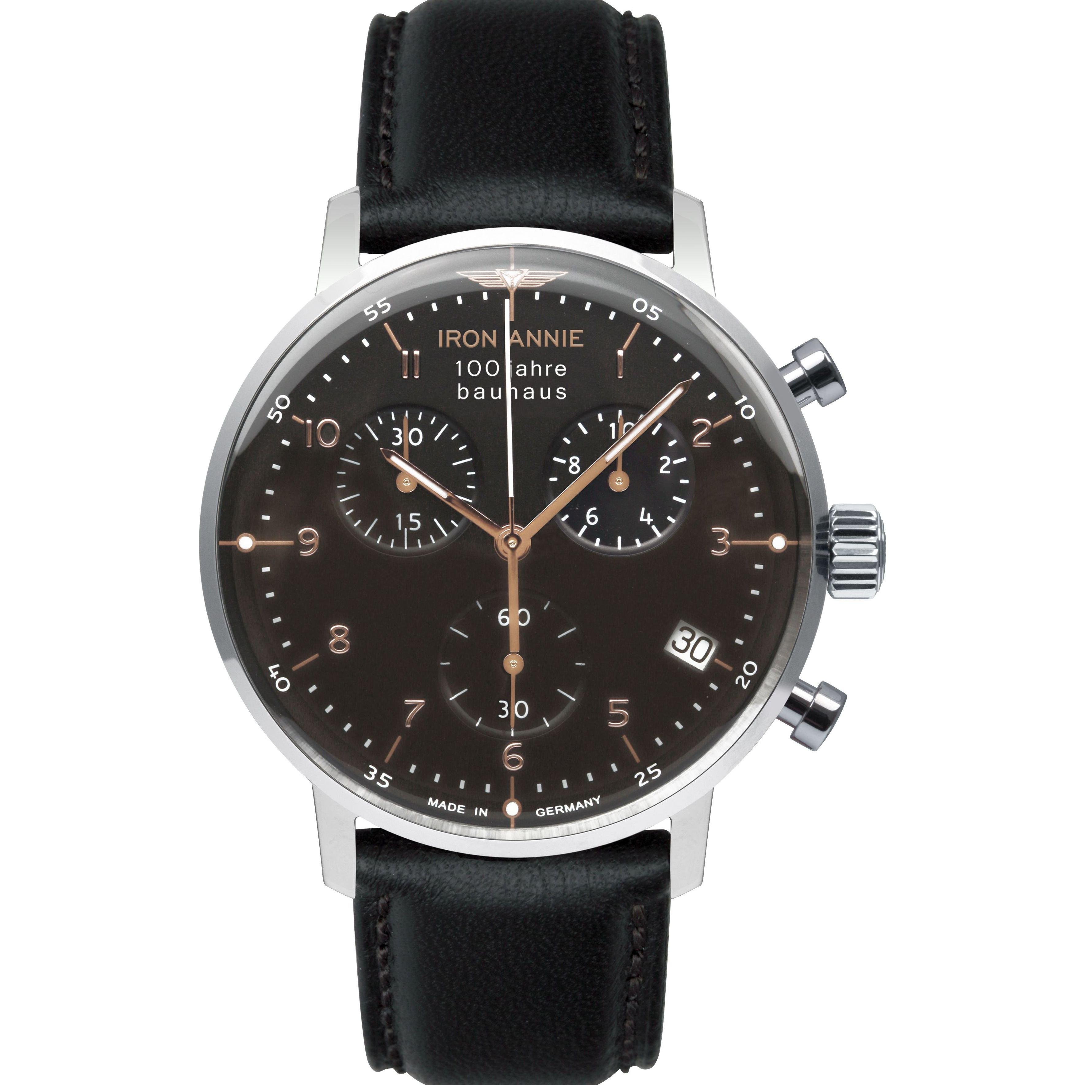 Iron Annie 5096-2 is a practical and handsome Gents watch from Bauhaus collection. Material of the case is Stainless Steel while the dial colour is Black. The features of the watch include (among others) a chronograph. In regards to the water resistance, the watch has got a resistancy up to 50 metres. It means it can be submerged in water for periods, so can be used for swimming and fishing. It is not recommended for high impact water sports. We ship it with an original box and a guarantee from the manufacturer.