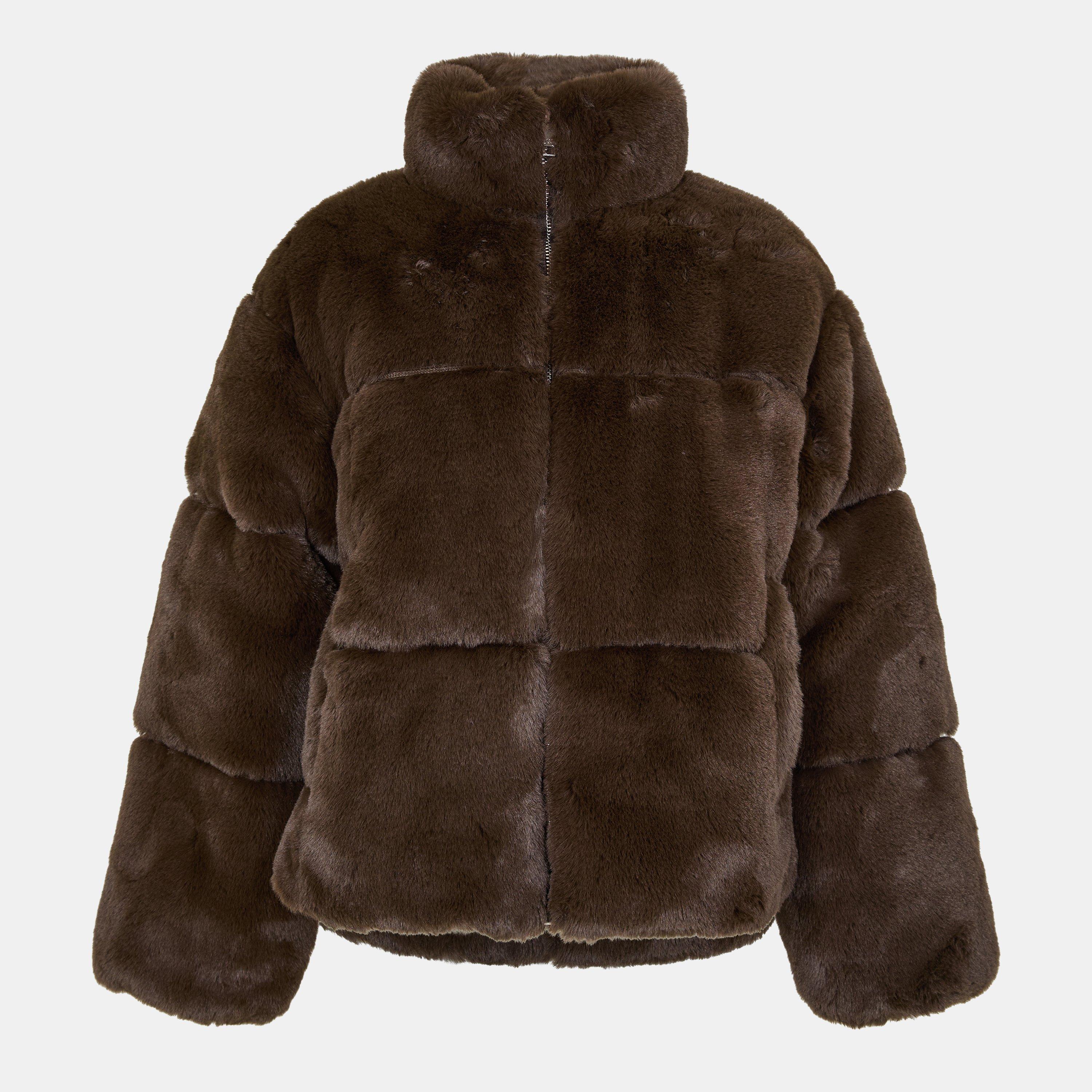 Jack Wills Women's JW Fur Long Sleeve Short Puffer Jacket
